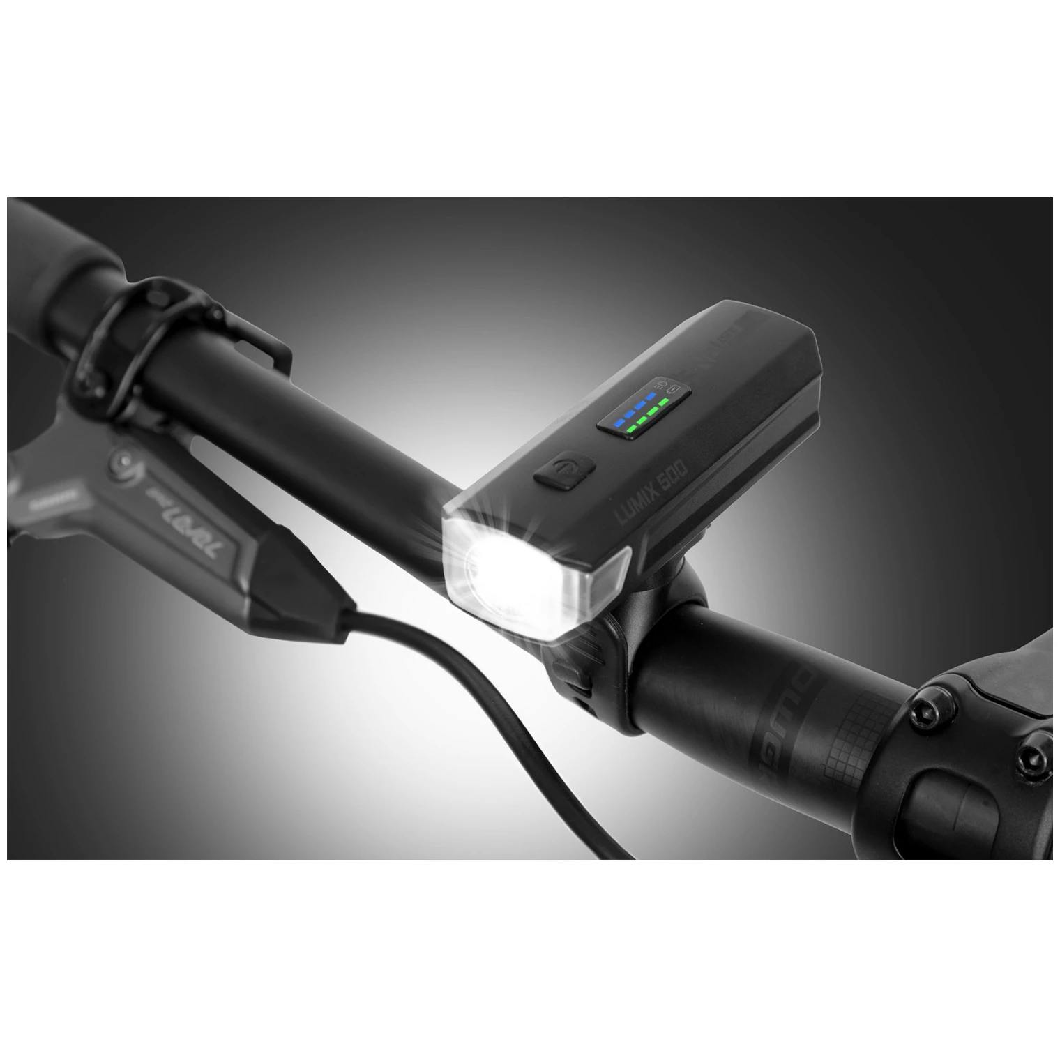 Farul frontal Lumix 500 oferă o putere de 500 de lumeni și o rază de acțiune de până la 140 de metri, astfel încât iluminează perfect drumul din fața ta. Puteți alege dintre patru moduri de iluminare (3 intensități + intermitent) în funcție de condițiile actuale. Afișajul grafic integrat arată clar modul selectat și nivelul bateriei. Farul este reîncărcabil prin USB-C, echipat cu o baterie Li-ion de 2500 mAh cu o autonomie de până la 13 ore și, datorită designului rezistent la apă IPX4, este gata chiar și pentru plimbări prin ploaie.