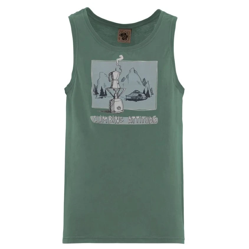 Maioul modern pentru bărbați 1Caffe Men's de la marca E9 este fabricat din 100% bumbac organic.Maioul are un imprimeu elegant cu o cafea care fierbe într-o cafetieră moka într-o vale de sub munți. Este fabricat în Italia, cu poluare minimă a mediului și cu accent pe un design extravagant, design unic și confort în timpul cățărării.