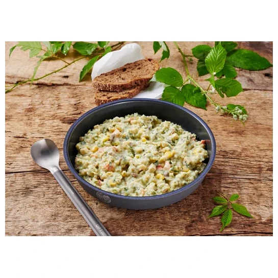 Puiul cu smântână, de la producătorul Trek’n Eat, este alegerea ideală pentru oricine dorește să se bucure de o masă consistentă și cremoasă. Ingredientul principal este orezul cu bob lung, completat de carne de pui de calitate, sos de smântână și legume. Îți poți pregăti mâncarea în propriul ambalaj și apoi o poți consuma direct din el.