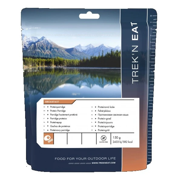 Mic dejun de la marca Trek'n Eat plin de proteine, completat cu bucăți delicioase de fructe pentru un stil de viață activ. Alimentele sunt deshidratate prin liofilizare (congelare). Acest proces elimină apa din alimente fără a le rupe forma și păstrează vitaminele și mineralele benefice. Astfel, alimentele sunt mult mai ușoare, dar își păstrează valoarea nutritivă și gustul original.