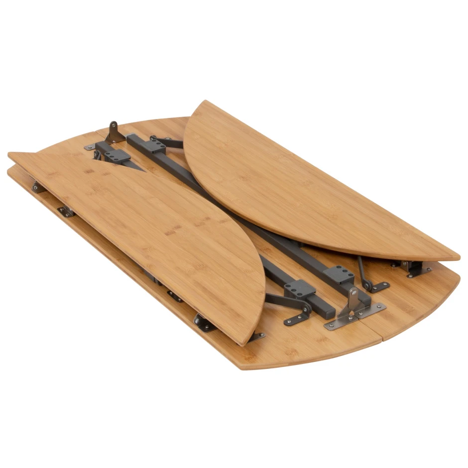 Această masă rotundă este proiectată pentru a fi ușor pliată și transportată. Atunci când este pliată, ocupă spațiu minim, ceea ce o face partenerul ideal pentru călătorii, parc, balcon, grădină sau camping. Toate componentele mesei sunt ușoare și în același timp stabile.