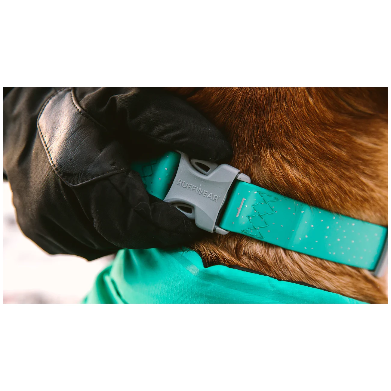 Gulerul impermeabil pentru câine Ruffwear Confluence™ Collar are o mărime reglabilă, imprimeu reflectorizant și o cataramă solidă din plastic. Este ideal pentru câinii cărora le place apa.