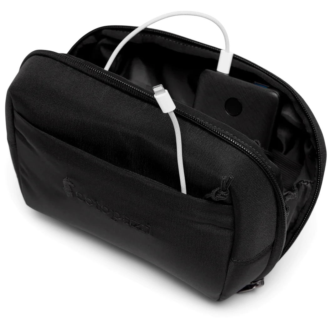 Organizatorul Viaje Tech Organizer de la Cotopaxi păstrează tot ce ai nevoie la îndemână în timpul călătoriilor. Este potrivit în special pentru electronice, cum ar fi încărcătoare, cabluri etc. Husa este fabricată dintr-o țesătură exterioară rezistentă, în timp ce în interior are o suprafață moale periată care protejează echipamentul din interior. Husa este împărțită în interior în mai multe compartimente și are buzunare cu fermoar.