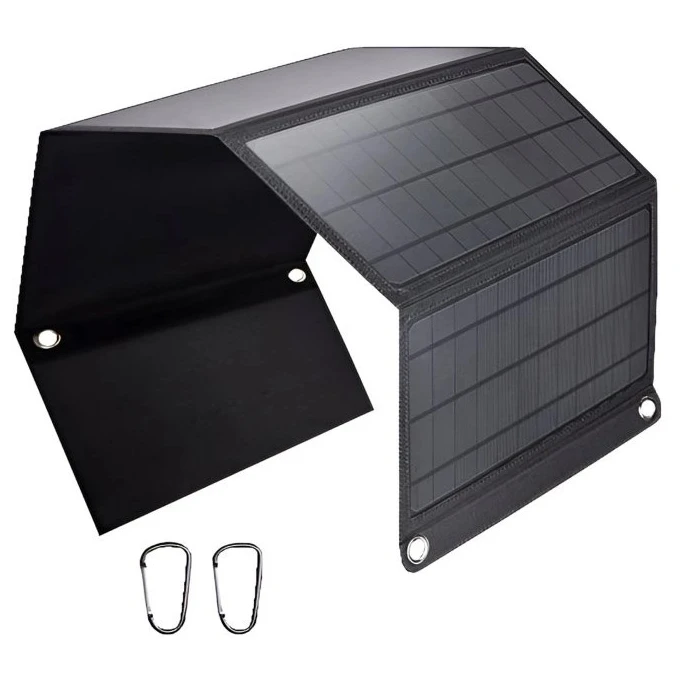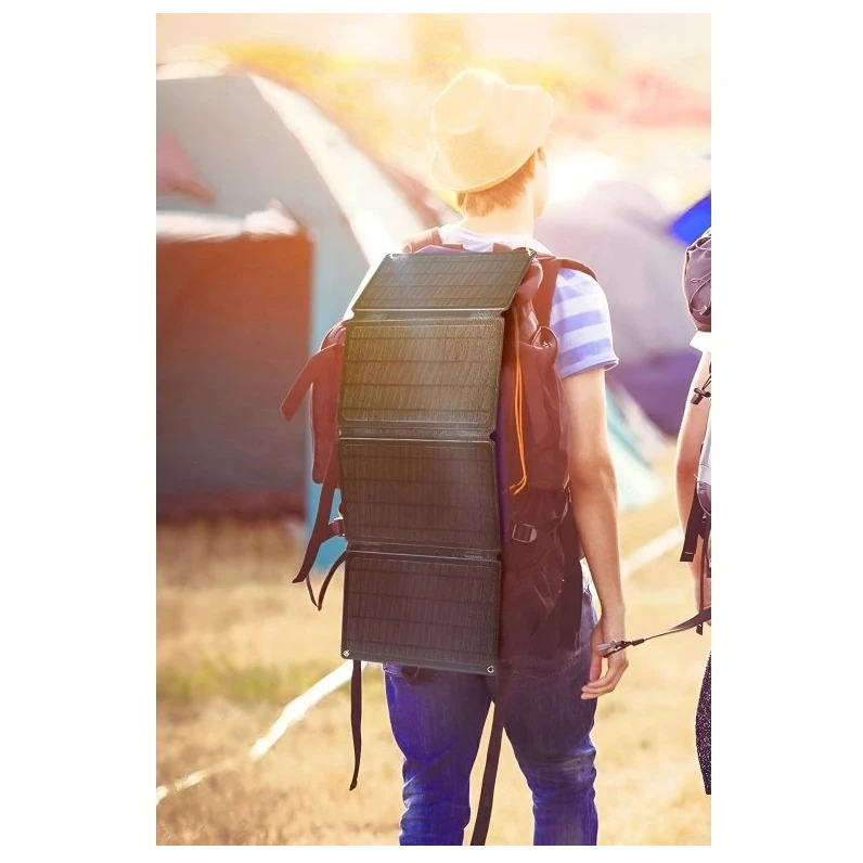 Panoul este echipat cu o carcasă din poliester rezistentă la apă, ochiuri pentru atașare ușoară (rucsac, bicicletă, cort) și funcția de pornire automată a încărcării după conectarea dispozitivului. Trei porturi USB permit încărcarea majorității dispozitivelor, inclusiv Apple, Samsung, Huawei, Xiaomi și altele.