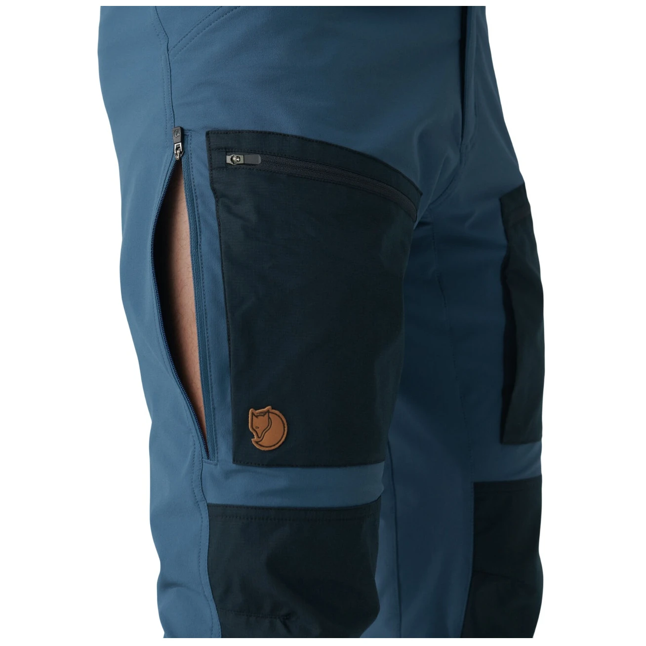 Pantalonii Keb Agile de la Fjällräven sunt concepuți pentru trekking tehnic și excursii dificile pe vreme mai caldă. Datorită țesăturii stretch dublu țesute, combină greutatea redusă, durabilitatea și confortul la fiecare pas. Designul minimalist este completat de buzunare deschise pentru mâini, buzunare pe picioare și picioare conice pentru o mai bună mișcare pe teren.