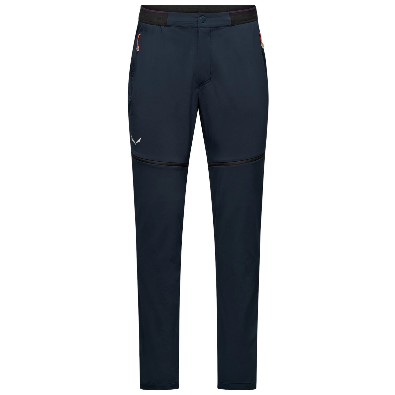 Manșetele detașabile (zip-off) permit transformarea rapidă în pantaloni scurți, în funcție de condițiile actuale. Pantalonii au o talie plată cu reglare interioară prin șnur, două buzunare discrete cu fermoar și un buzunar spate din plasă.