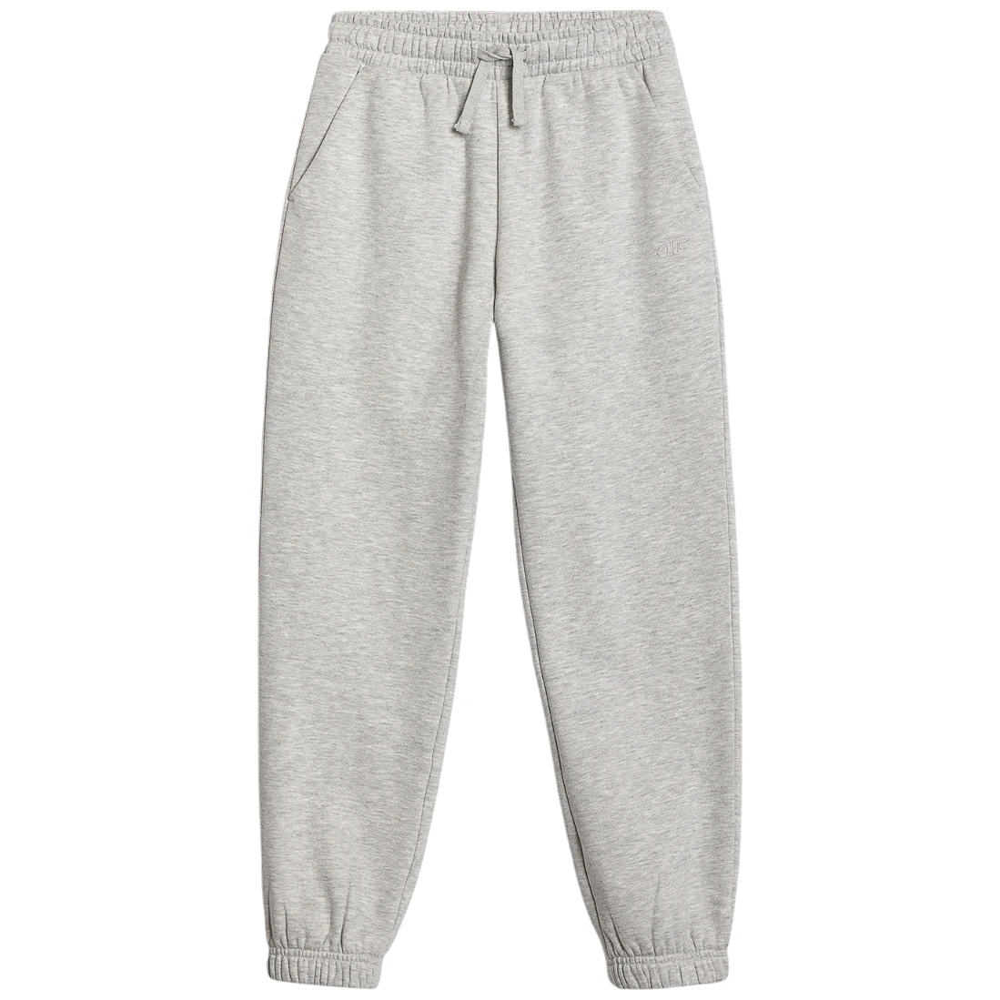 Pantalonii pentru copii Trousers Cas F1509 4F, confecționați din tricot moale de trening cu interior pieptănat, cu talie elastică și manșete, oferă căldură și confort în timpul purtării de zi cu zi.