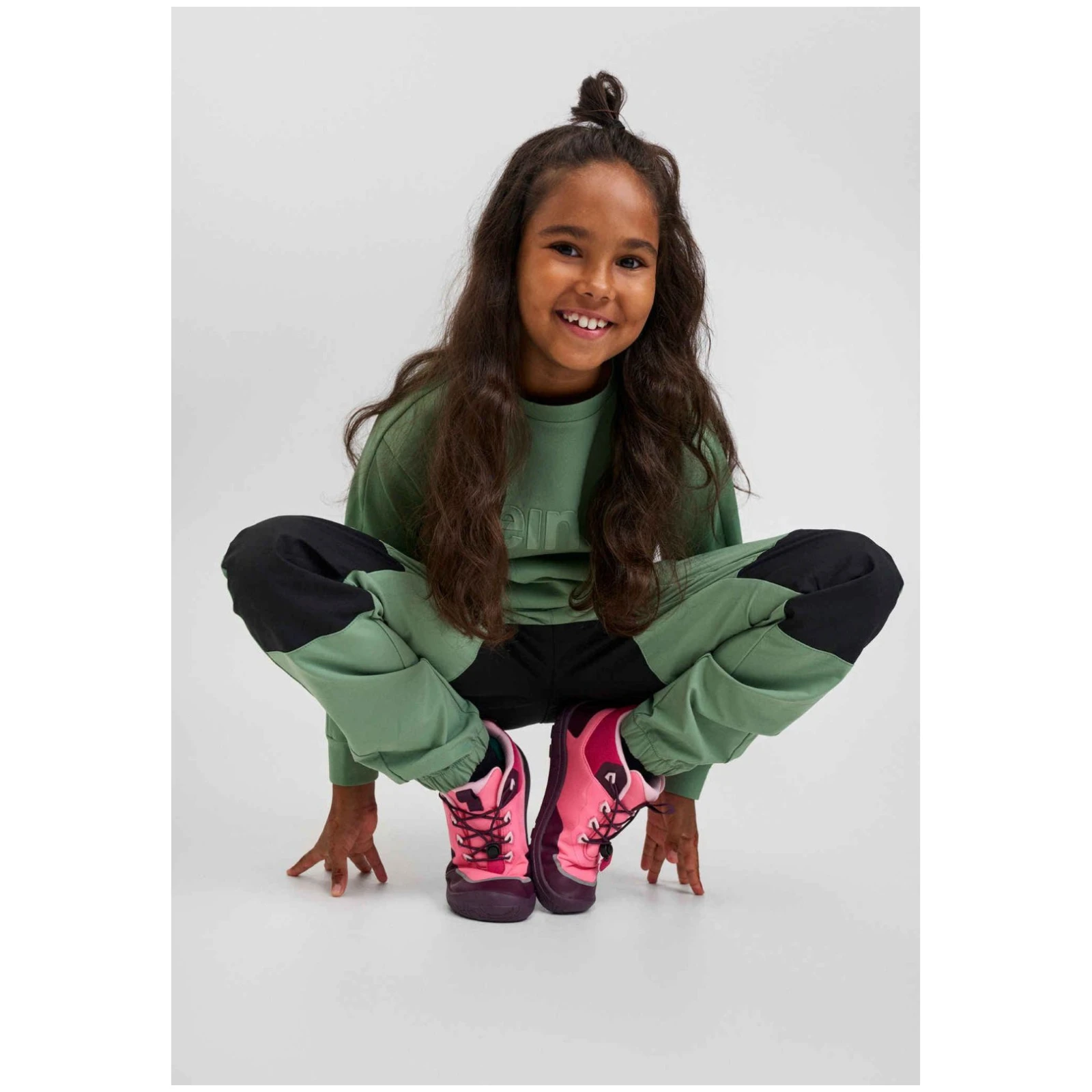 ReimaPantalonii pentru copii Vaeltaa oferă o țesătură întărită la genunchi și spate, o talie elastică cu cordon, două buzunare laterale înclinate și terminații elastice la picioare.