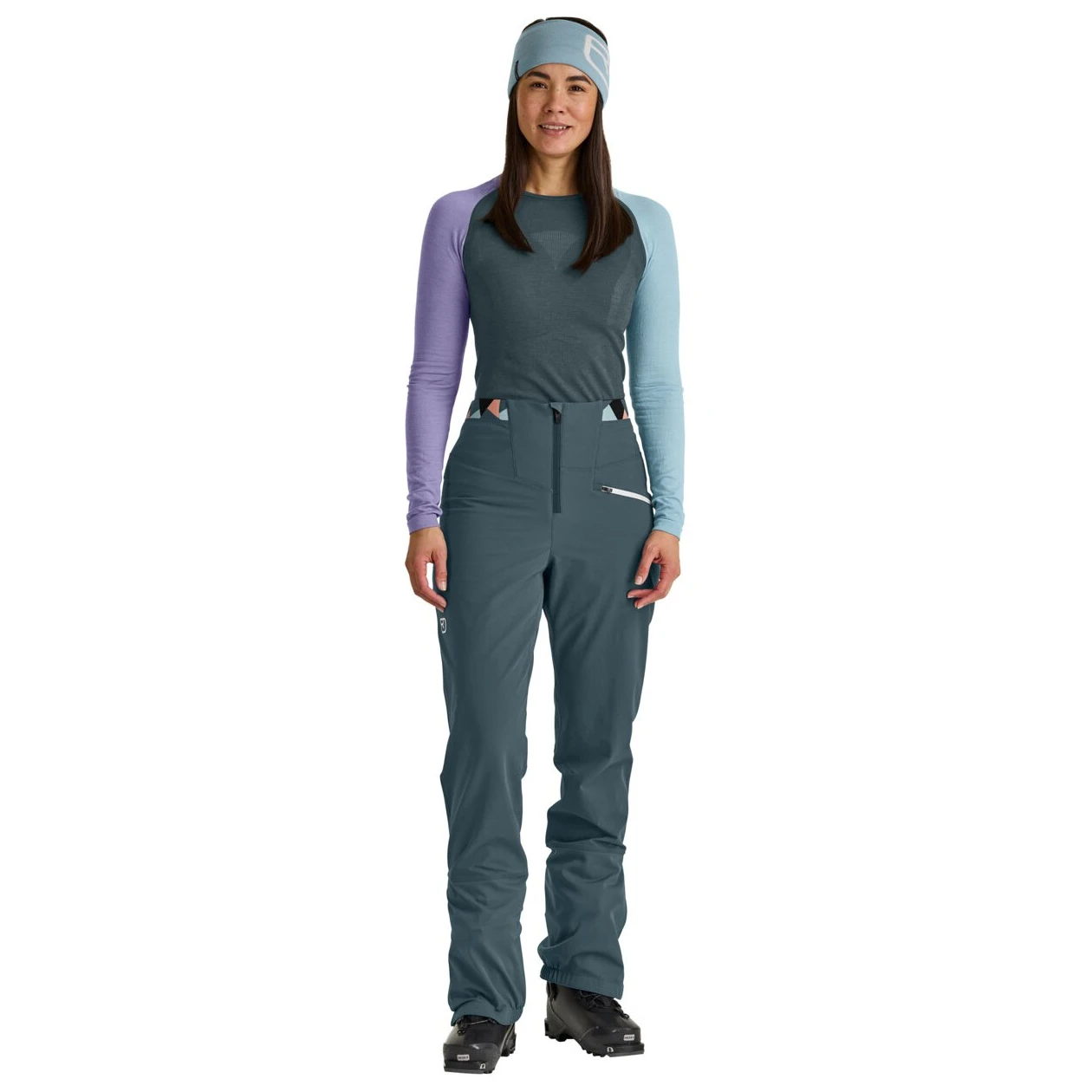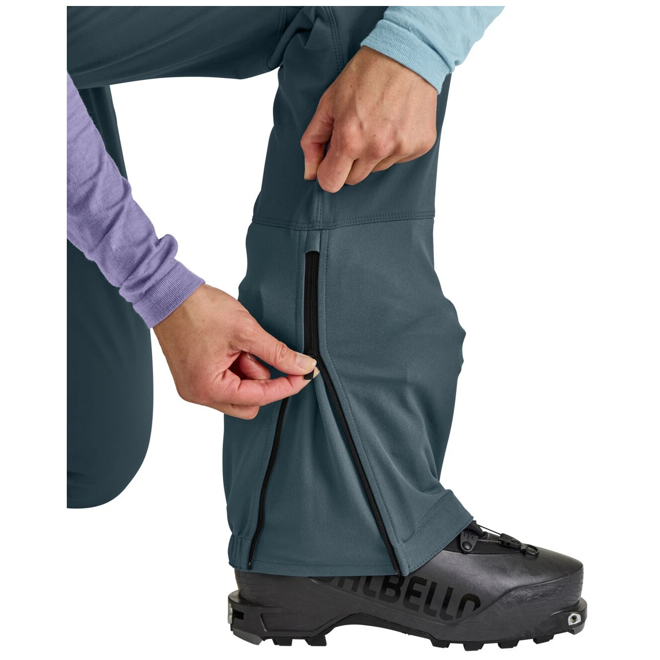 Pantalonii au o croială sportivă și detalii funcționale concepute pentru schi alpinism: genunchi anatomici modelați, protecție Schoeller® împotriva muchiilor schiurilor, manșete reglabile la glezne, ajustare cu fermoar a pantalonilor pentru adaptarea la încălțăminte, talie înaltă cu panou elastic în spate și un buzunar practic pe laterale, iar marginea silențioasă de cauciuc din interior împiedică în mod fundamental deplasarea pantalonilor în timpul mișcării.