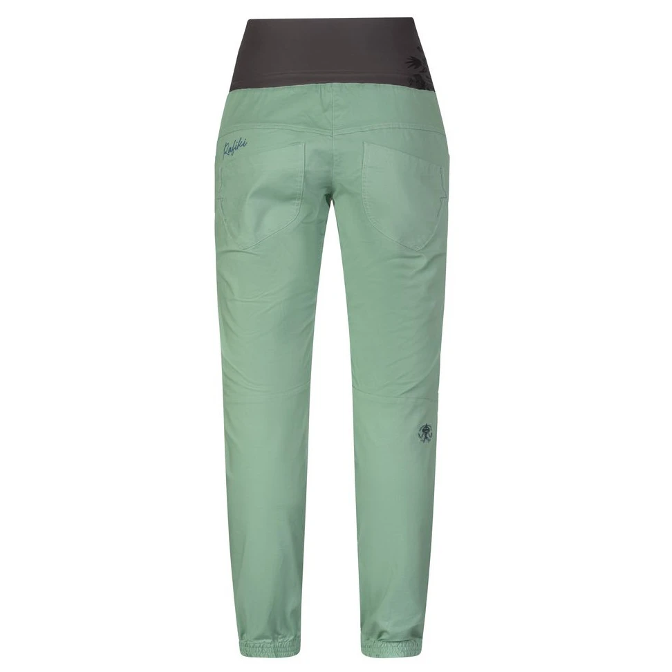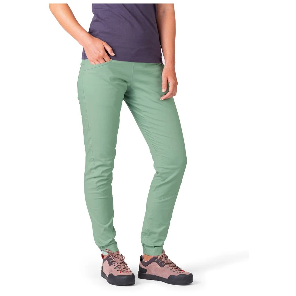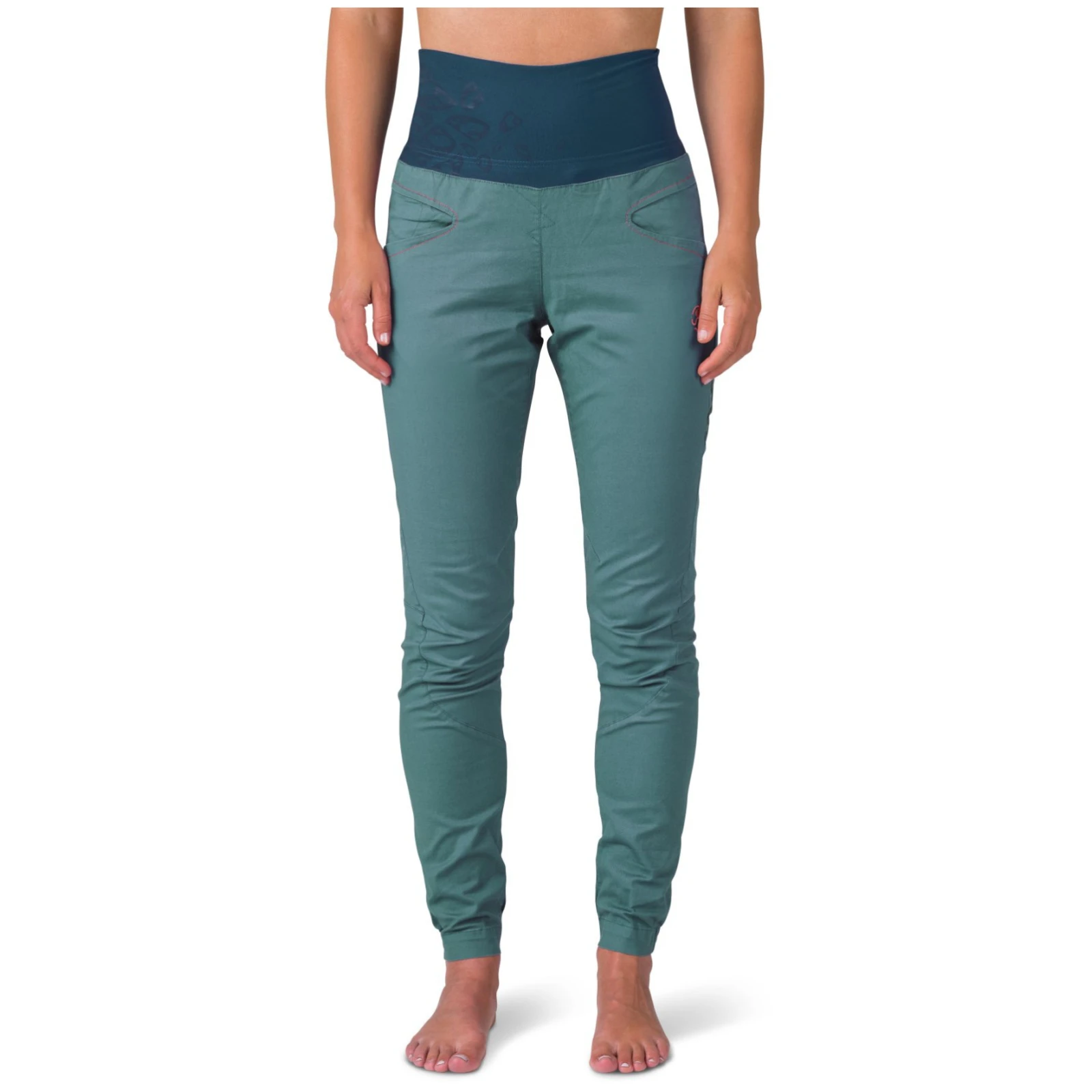 Acești pantaloni de alpinism pentru femei cu un aspect mai civil sunt respirabili și rezistenți. Tăietura conică este, de asemenea, confortabilă datorită materialului elastic. Massone de la Rafiki sunt perfecte pentru alpinism. Există o manșetă largă și confortabilă în talie, un burduf adaptat, genunchi conturați sau pantaloni care sunt trași înapoi cu elastic pentru a-i menține mult deasupra gleznei. Ce ai putea cere mai mult pe stânci sau pentru bouldering. Buclele pentru o periuță de dinți mică sau mare sunt, de asemenea, o caracteristică atractivă.
