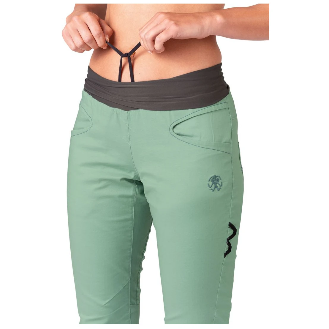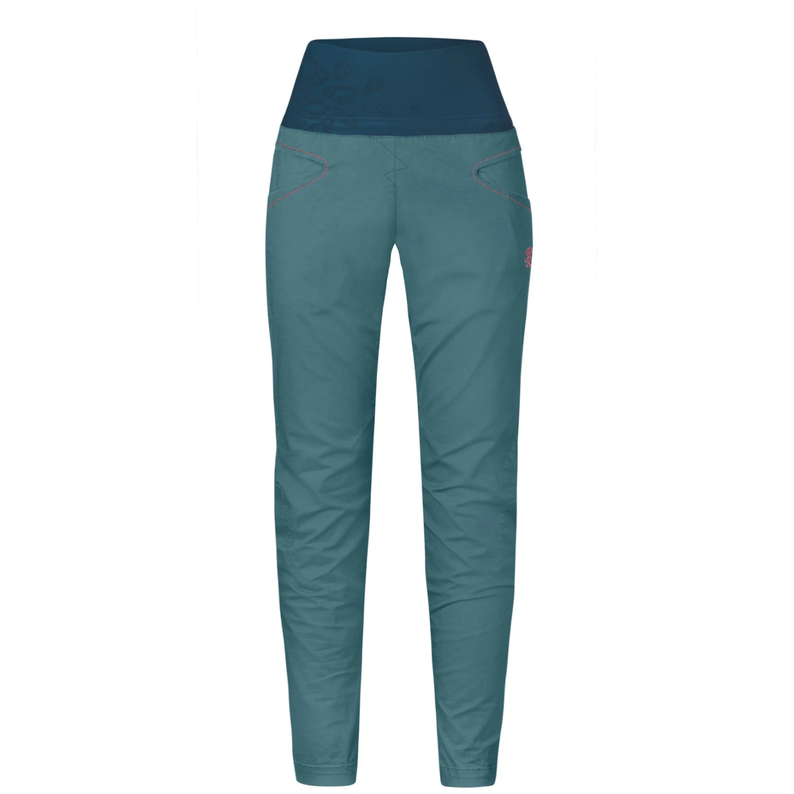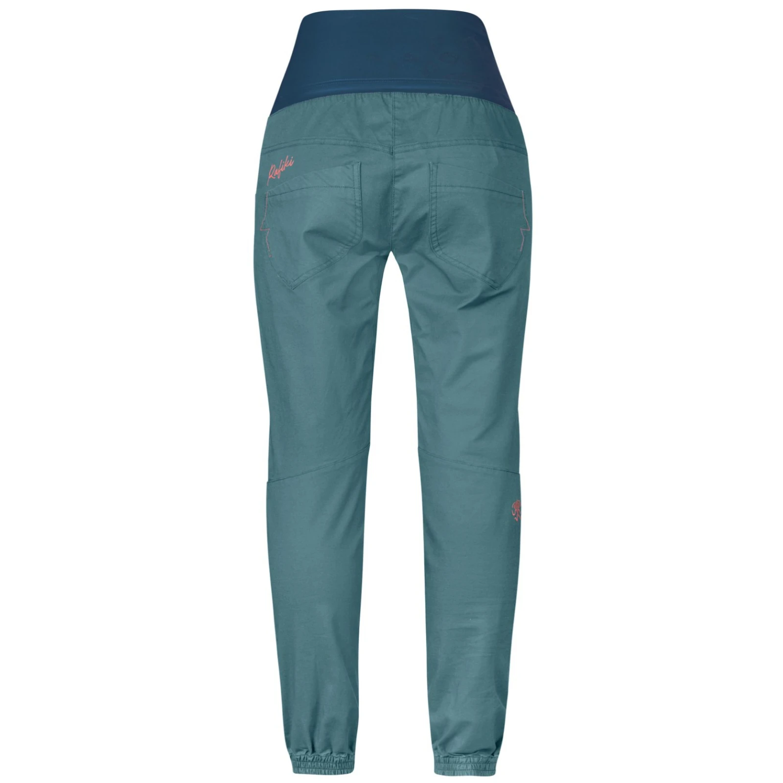 Acești pantaloni de alpinism pentru femei cu un aspect mai civil sunt respirabili și rezistenți. Tăietura conică este, de asemenea, confortabilă datorită materialului elastic. Massone de la Rafiki sunt perfecte pentru alpinism. Există o manșetă largă și confortabilă în talie, un burduf adaptat, genunchi conturați sau pantaloni care sunt trași înapoi cu elastic pentru a-i menține mult deasupra gleznei. Ce ai putea cere mai mult pe stânci sau pentru bouldering. Buclele pentru o periuță de dinți mică sau mare sunt, de asemenea, o caracteristică atractivă.