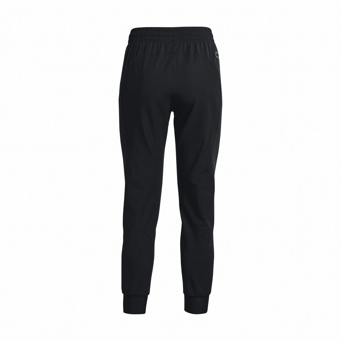 Pantaloni Jogger Unstoppable pentru femei de la marca Under Armour cu un tratament de suprafață UA Storm, care respinge perfect apa fără a reduce respirabilitatea. Materialul este plăcut neted, confortabil și durabil în același timp. Materialul elastic nu restricționează mișcarea, ceea ce este susținut de construcția cu tehnologie 4-Way Stretch care crește elasticitatea materialului. Pantalonii au o talie elastică confortabilă cu cordon, buzunare deschise și un buzunar lateral cu fermoar.