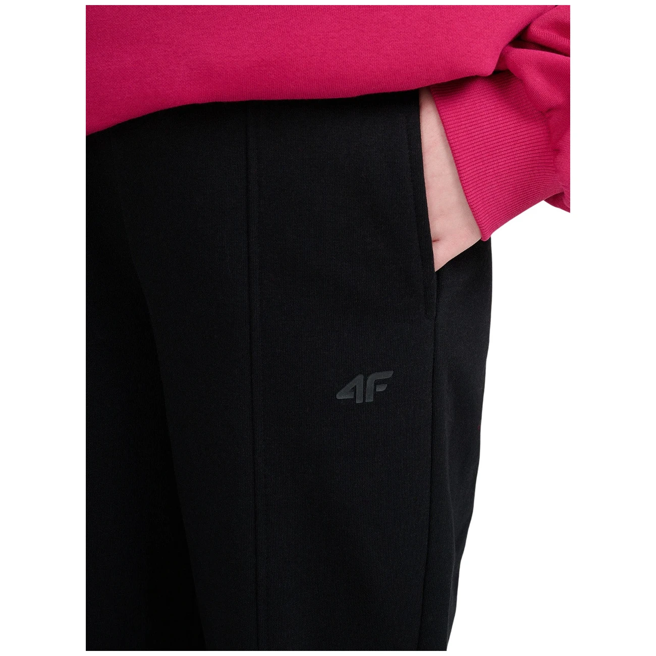 Pantalonii de trening pentru copii Trousers Cas F1242 4F, cu croială regular, cu pantaloni tip jogger și talie elastică, oferă confort și durabilitate. Tricotul din bumbac cu adaos de poliester este moale, respirabil și completat cu un interior pieptănat pentru un plus de căldură.