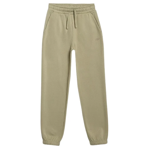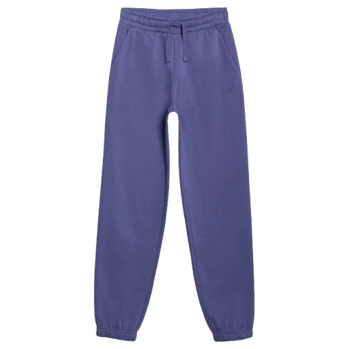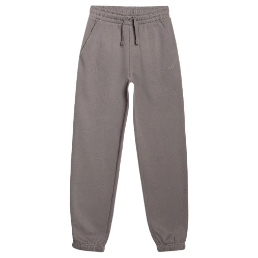 Pantalonii de trening pentru copii 4F Trousers Cas M1245, confecționați din material moale, tip fleece pieptănat pe interior, oferă căldură și confort în timpul purtării de zi cu zi. Au o talie elastică cu șnur, două buzunare laterale și terminații cu bordură.
