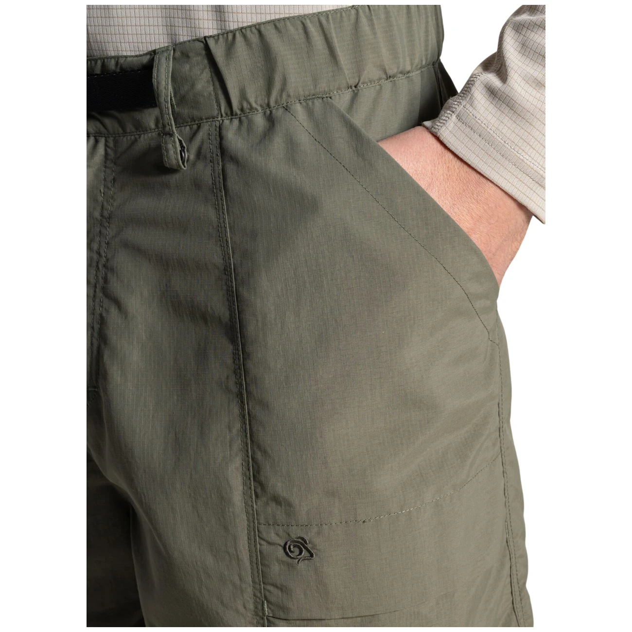 Oferă un croi mai lejer, până la genunchi și o talie cu centură integrată. Pantalonii scurți elimină umezeala de pe corp și se usucă rapid. Materialul conține un tratament pe bază de plante NosiLife, care elimină și neutralizează mirosurile corporale, protejează utilizatorul de insectele enervante, și în același timp oferă protecție UV. În interior există bucle pentru o uscare ușoară. În total cinci buzunare, dintre care unul cu fermoar, sunt ideale pentru depozitarea obiectelor personale pe care vrei să le ai la îndemână.