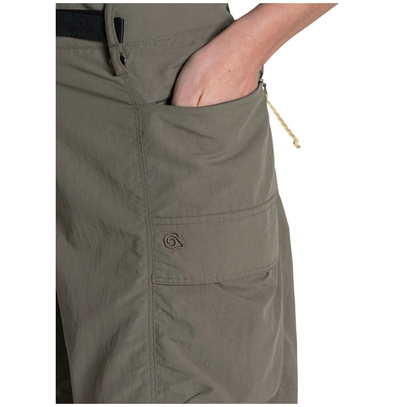 Pantalonii scurți NosiLife Medina Cargo Short pentru femei de la Craghoppers sunt croiți special pentru următoarea dumneavoastră aventură și sunt perfecți pentru orice activitate în aer liber. Sunt adaptați pentru vremea caldă, unde aveți nevoie de protecție maximă.