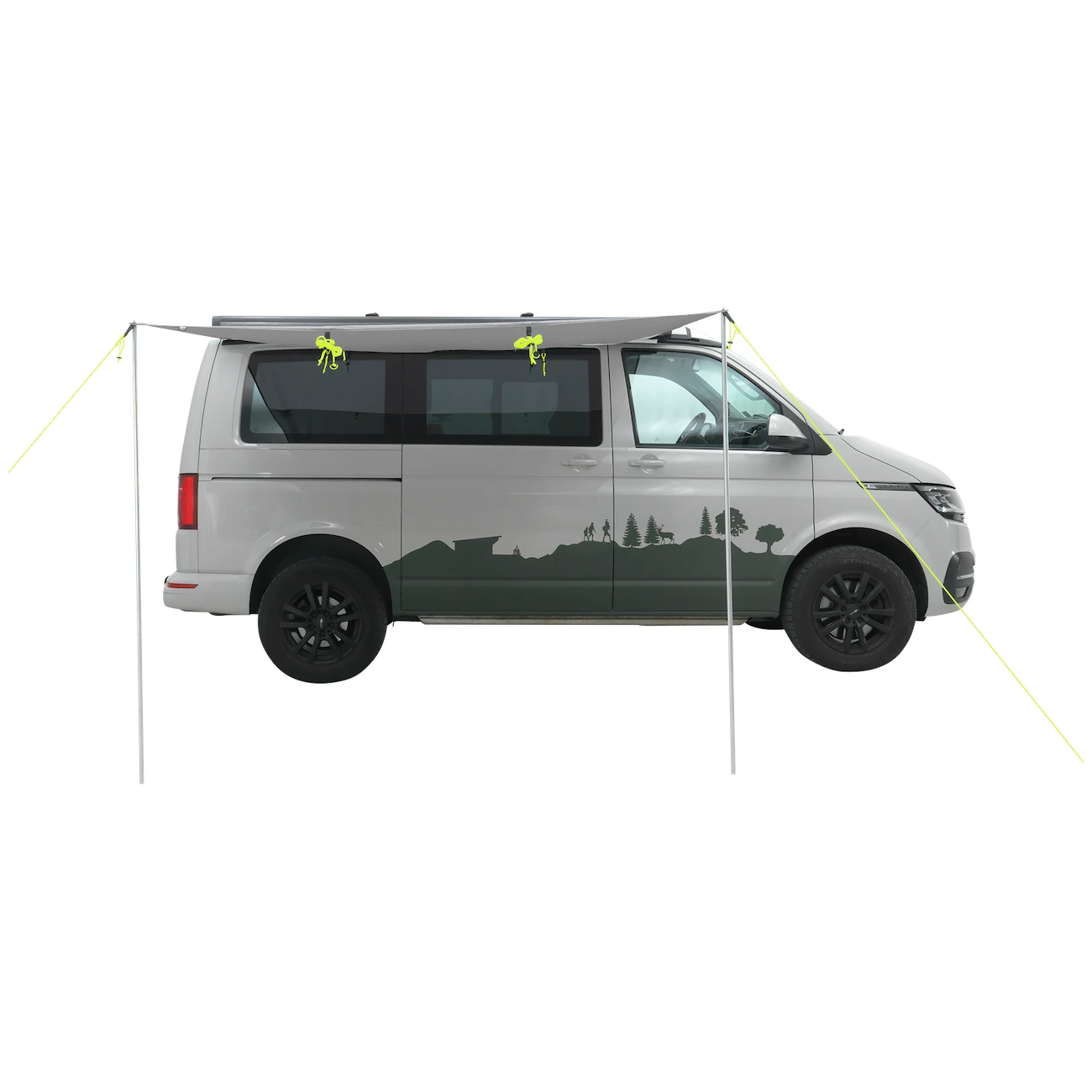 Hillcrest Tarp de la marca daneză Outwell este alegerea ideală pentru camping, indiferent dacă călătorești cu rulota, autorulota sau mașina. Datorită versatilității sale, puteți utiliza adăpostul și ca un paravan, care vă va proteja în mod fiabil nu numai de soare și ploaie, ci și de vânt. Adăpostul poate fi conectat la o mașină cu o înălțime de 155-300 cm.