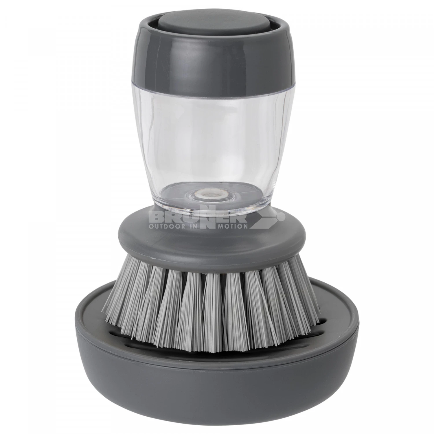 Peria Brunner Pura este ideală pentru camping sau acasă. Peria este dotată cu un dozator pentru detergent care se deschide după apăsarea butonului din partea superioară. Pentru umplerea dozatorului trebuie scos capacul superior. Pachetul include și un suport pentru scurgere care poate fi detașat și curățat cu ușurință.
