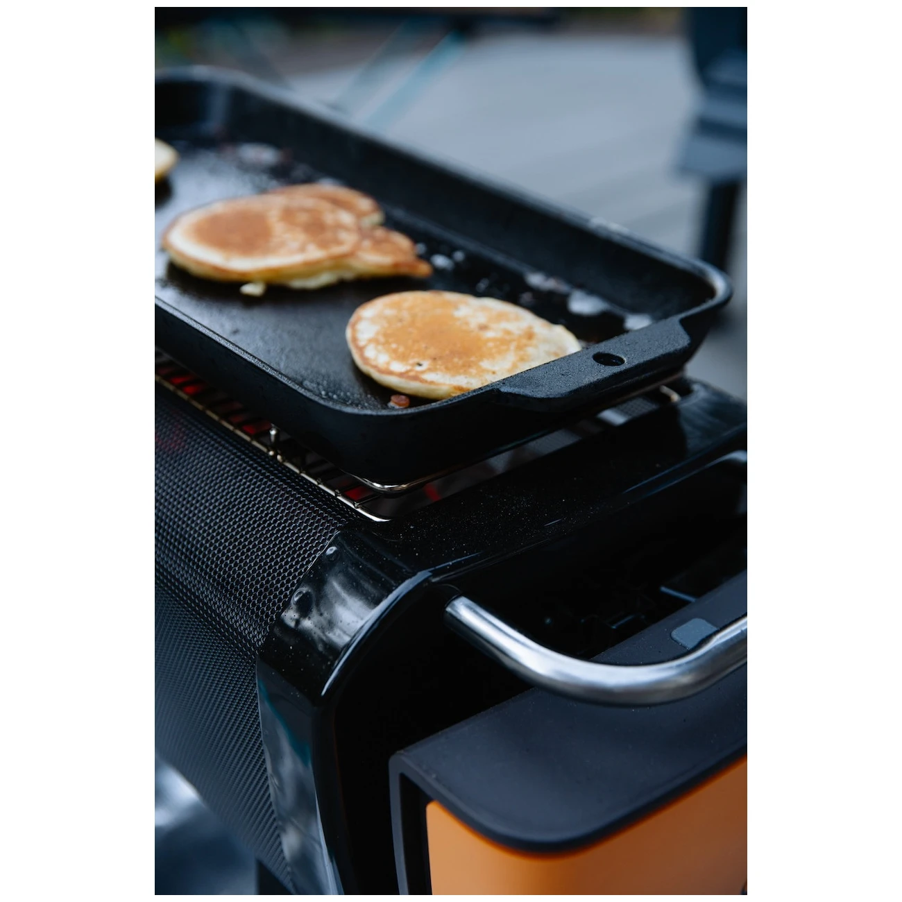 Tava din fontă pentru grătar Biolite Firepit Griddle este concepută pentru prepararea alimentelor pe șemineul/grătarul BioLIte Firepit +.