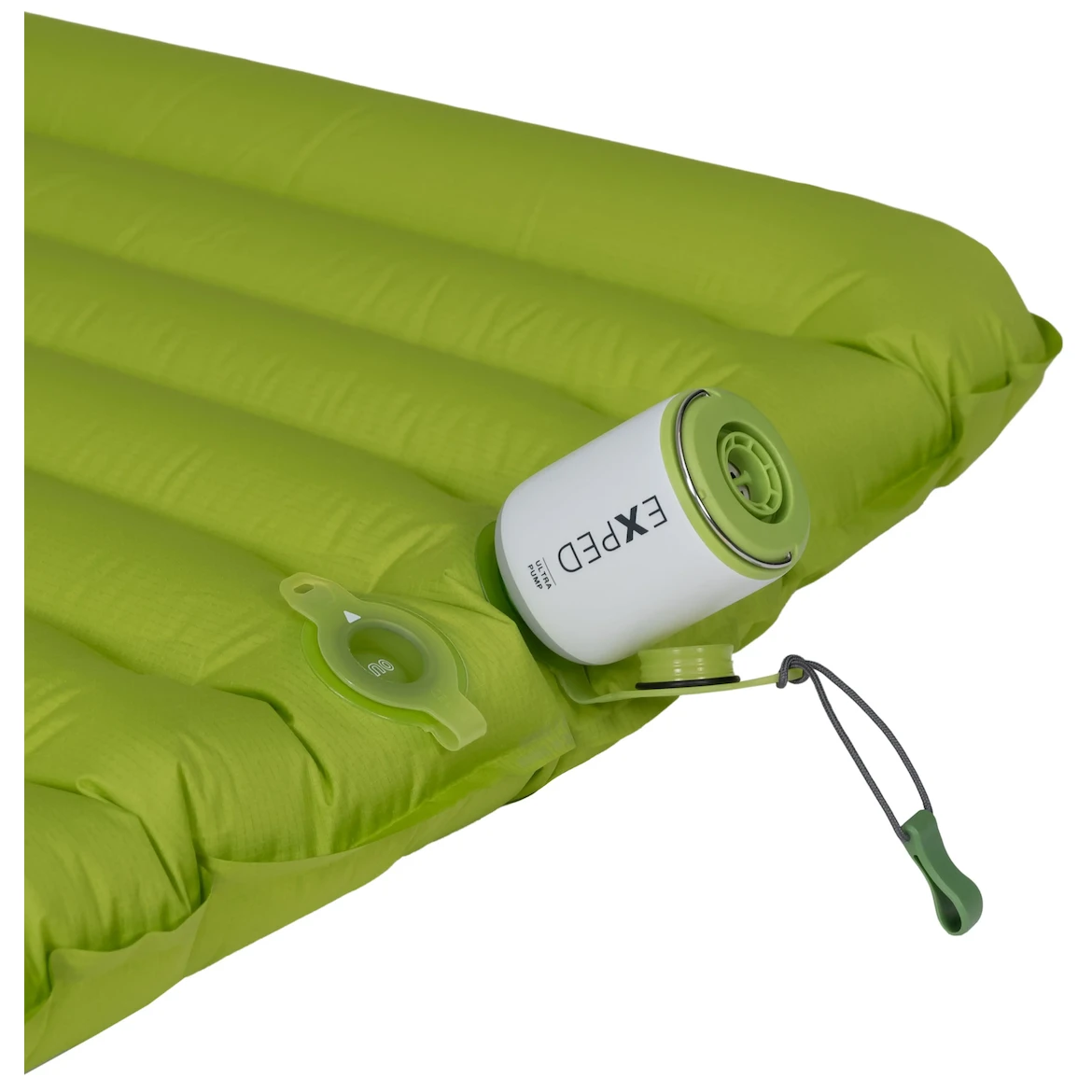 Pompa Ultra Pump ușoară și compactă de la Exped oferă o umflare rapidă, eficientă și ușoară a saltelelor de dormit și, în plus, funcționează și ca lampă.