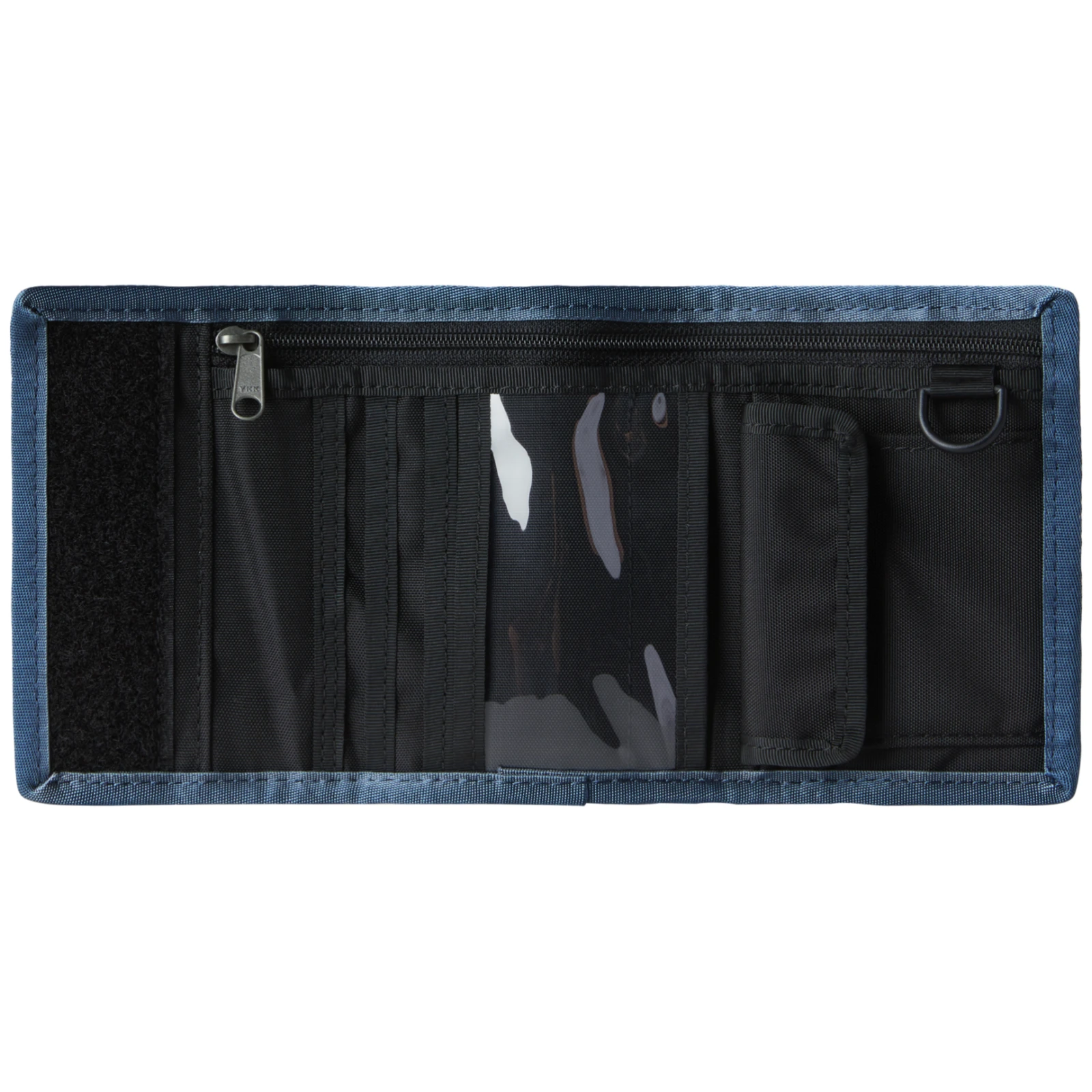 The North Face Base Camp Wallet este un portofel foarte ușor, pentru care s-au folosit materiale din care se confecționează bagaje de călătorie foarte rezistente. Se poate plia și se fixează cu velcro. În interior, pe lângă un compartiment plat pentru bancnote se află și un alt compartiment cu fermoar pentru documente, un buzunar pentru monede, un organizator pentru carduri și o bucla pentru atașarea cheilor.