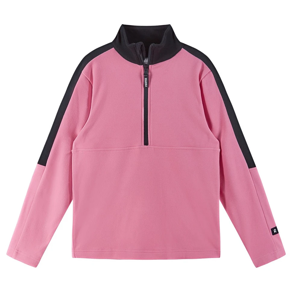Puloverul pentru copii Laduille de la Reima arată ca tricotat, dar în interior este călduros periat ca fleece. Este ușor și elimină bine umezeala. Puloverul are, de asemenea, un fermoar pe jumătate cu protecție pentru bărbie pentru un confort sporit și nervuri la manșete și la tiv.