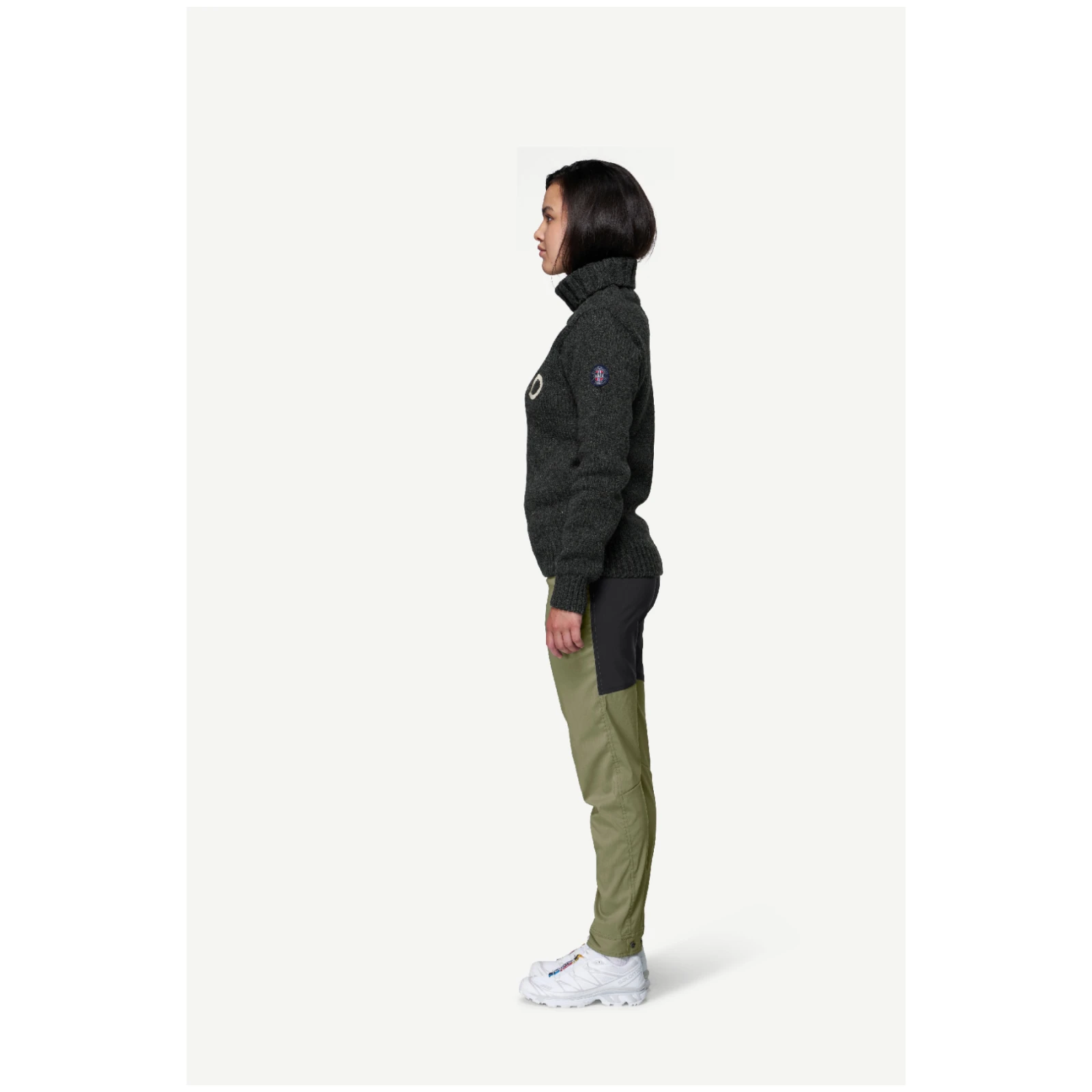 Colecția Devold Heritage se bazează pe peste 170 de ani de experiență în producția de îmbrăcăminte din lână. Maleta este tricotată din 100% lână norvegiană groasă, care oferă confort termic maxim, este durabilă și vă protejează în mod fiabil împotriva frigului și umezelii. Gulerul înalt protejează eficient gâtul, manșetele și tivul inferior asigură confort și menținerea formei. Datorită proprietăților naturale ale lânii, puloverul încălzește chiar și atunci când este umed, reglează temperatura, este respirabil și rezistent în mod natural la mirosuri.