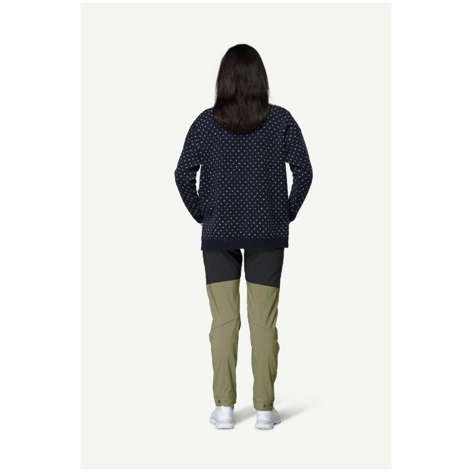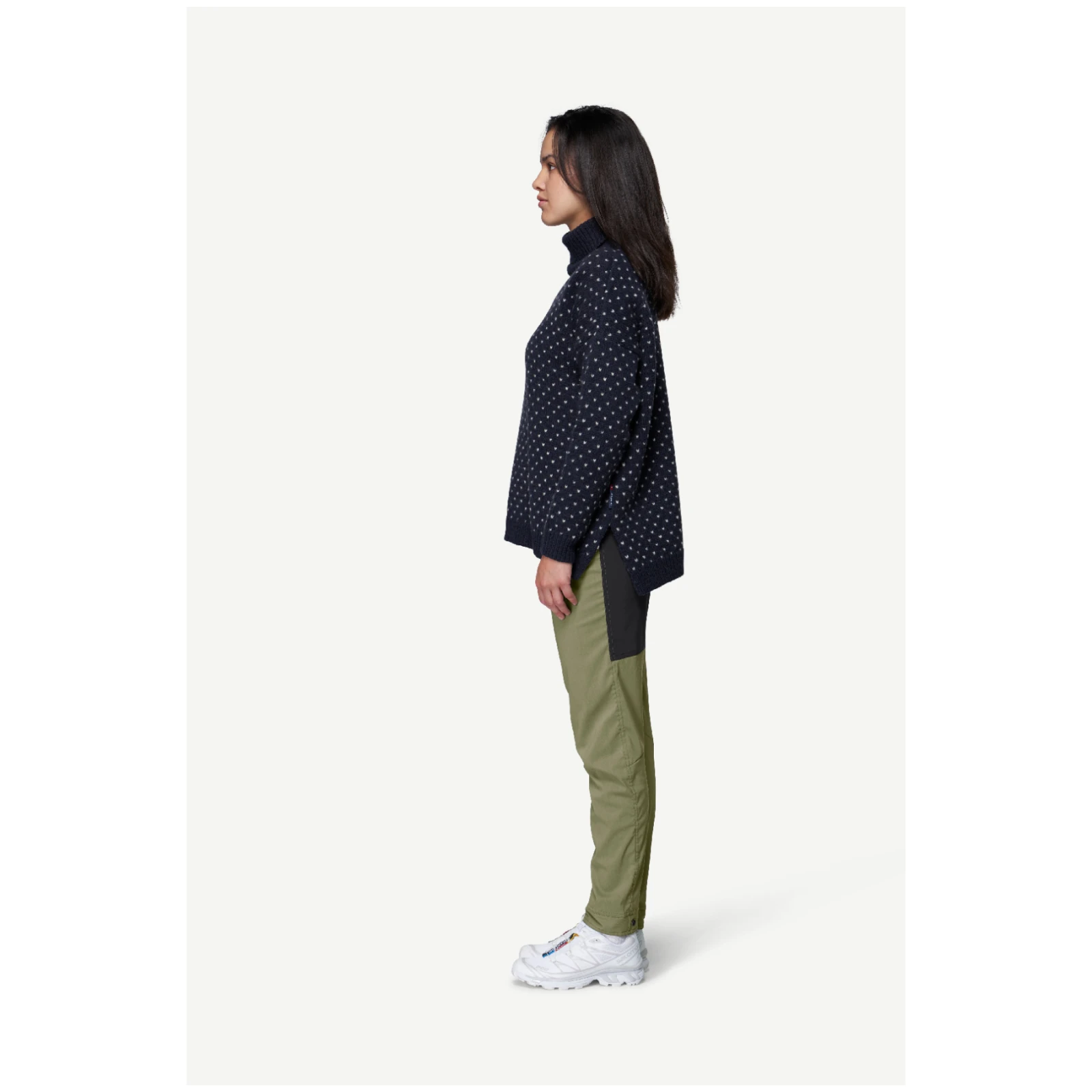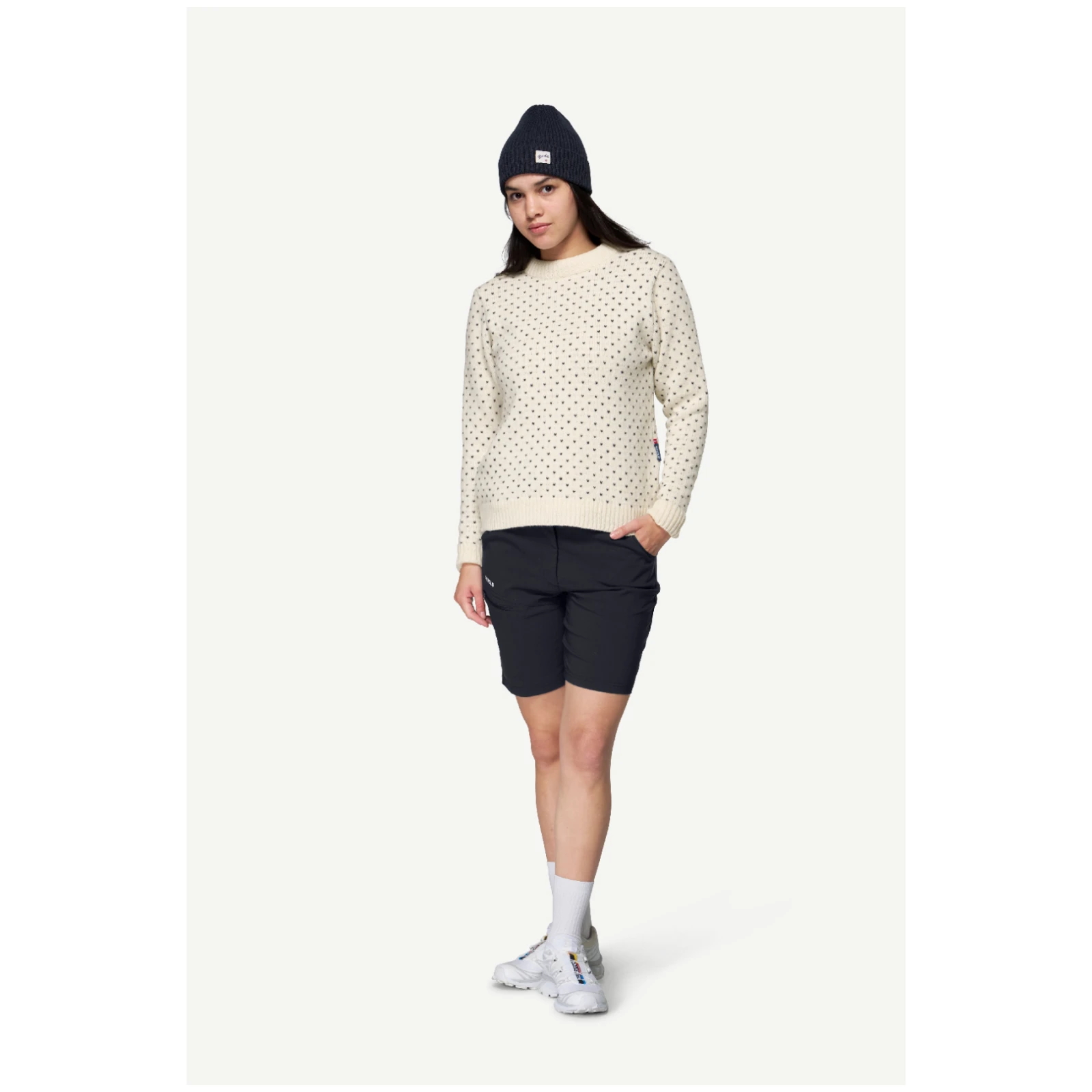 Modelele norvegiene minimaliste îi conferă un aspect atemporal, în timp ce tricotul drept clasic și marginea reiată la mâneci și tivul inferior asigură o purtare confortabilă. Lâna izolează în mod natural, reglează temperatura și încălzește chiar și atunci când este umedă, astfel încât vă menține uscat și confortabil în orice condiții meteorologice.