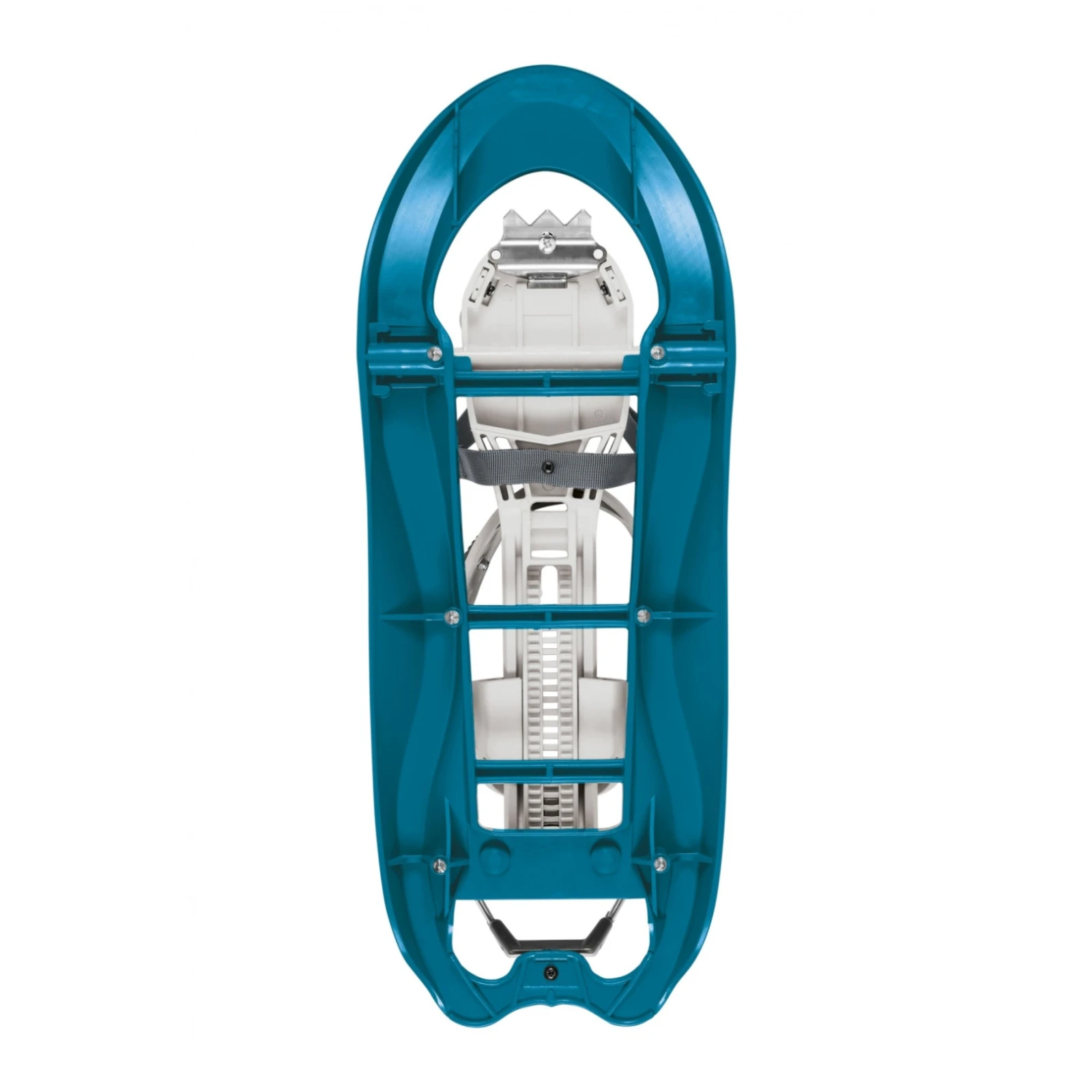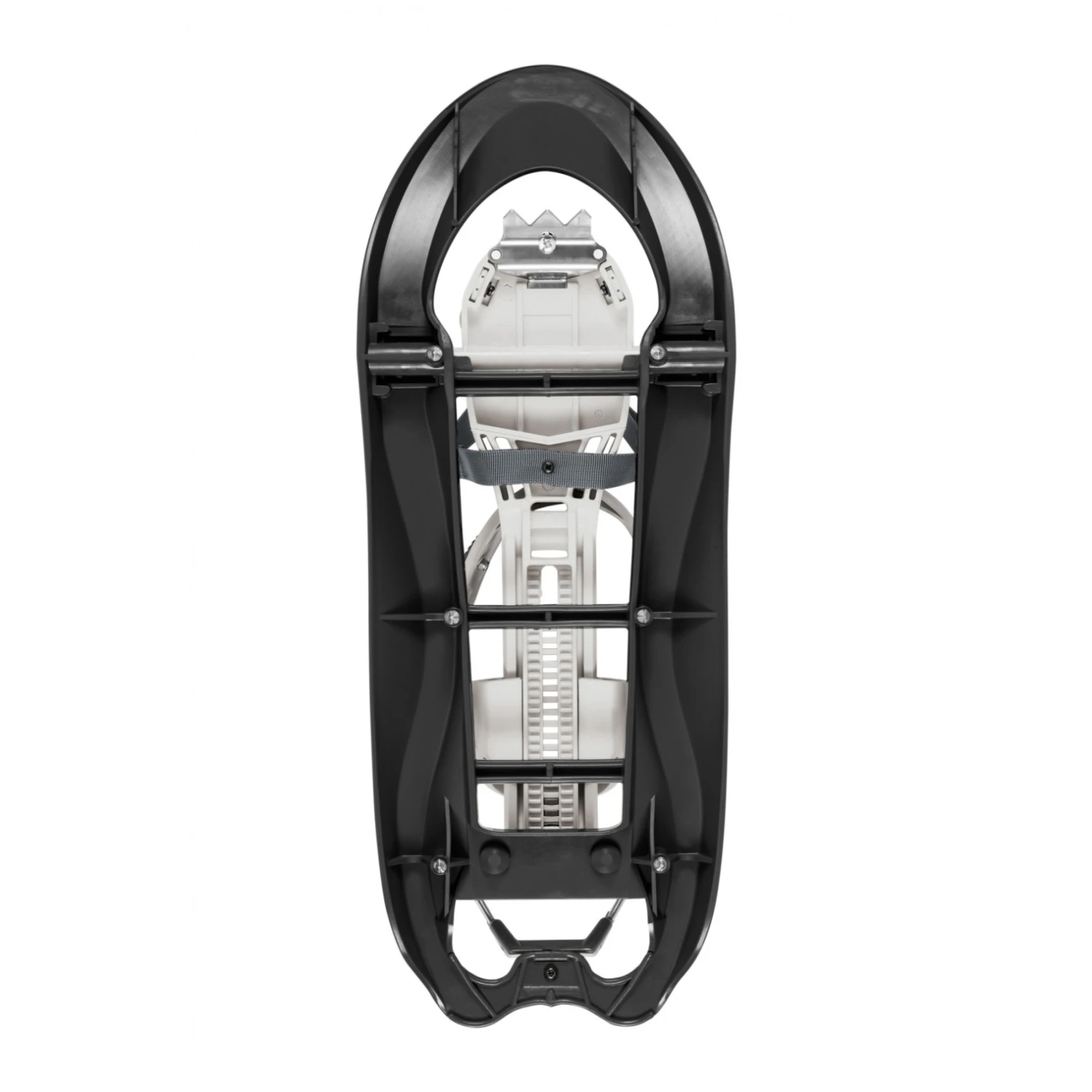 Cadrul special modelat din plastic dur și rezistent garantează o stabilitate excelentă chiar și pe pante abrupte. Laturile sale curbate sunt extinse pe partea inferioară de impact, ceea ce asigură o aterizare sigură și stabilă. În schimb, marginea superioară teșită previne acumularea zăpezii în timpul mersului, lucru pe care îl veți aprecia mai ales la coborâri – rachetele de zăpadă alunecă elegant prin zăpadă și accelerează pasul.