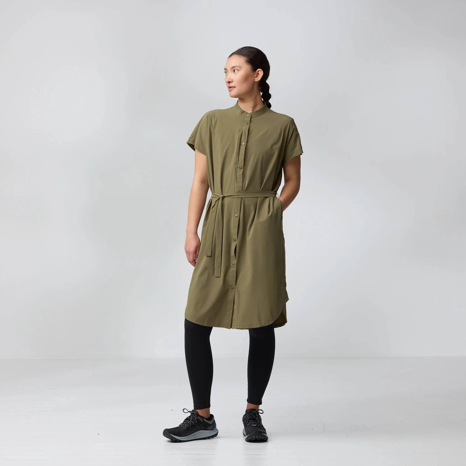 Rochie ușoară și respirabilă, tip cămașă, concepută pentru drumeții de vară, călătorii și uzura casuală. Rochia Abisko Fjäll combină funcționalitatea îmbrăcămintei outdoor cu confortul și stilul universal pentru zilele călduroase.
