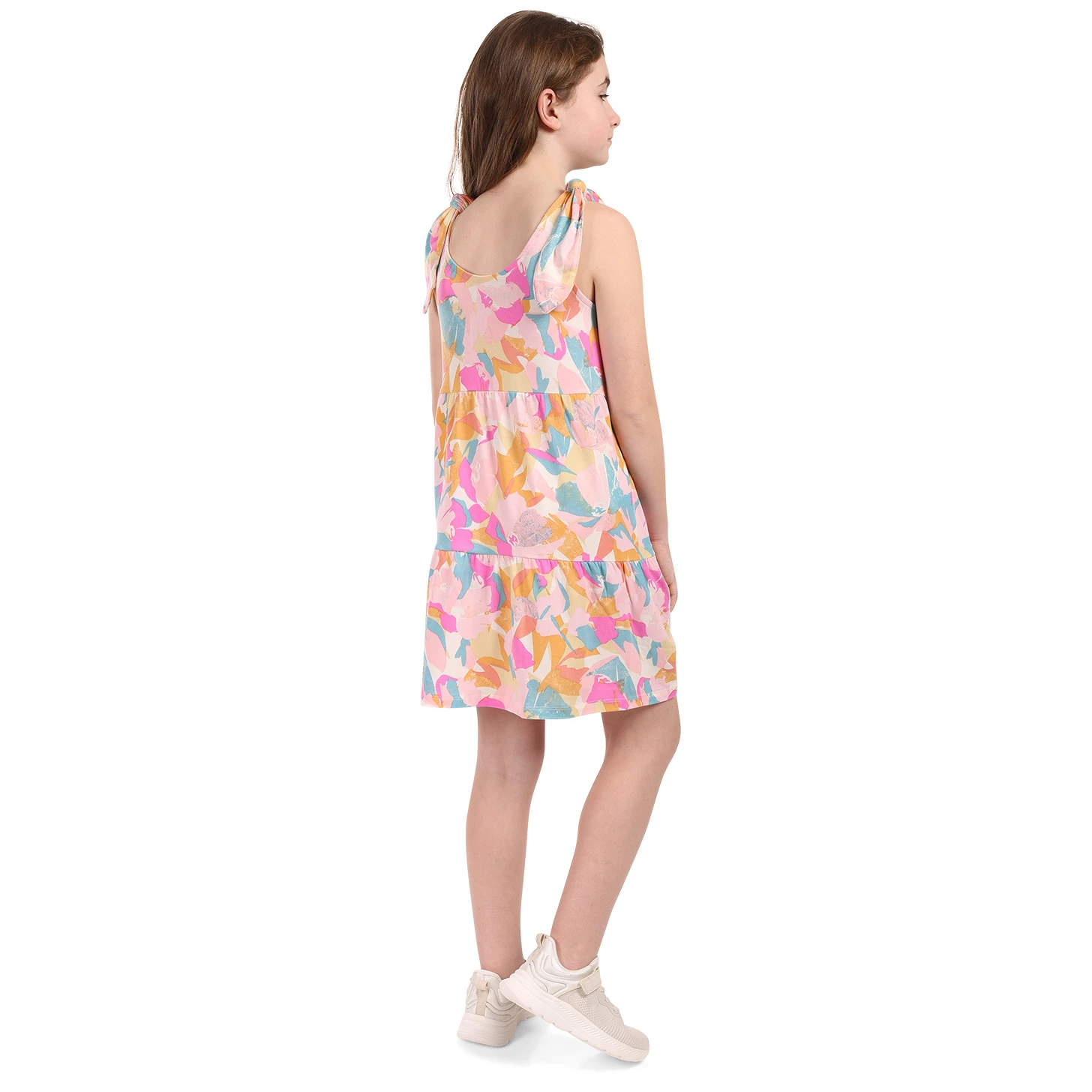 Rochie de vară pentru fete Areno este o alegere excelentă pentru orice domnișoară mică ce dorește să arate elegant în lunile calde și, în același timp, să se simtă în deplină confort. Este confecționată dintr-un material ușor, elastic și foarte respirabil (95% poliester, 5% elastan), datorită căruia oferă un confort deosebit pe durata purtării zilnice. Rochia are o croială mulată-evazată, în formă de A, și o lungime deasupra genunchilor, ceea ce, împreună cu partea superioară pe bretele, garantează o aerisire maximă în zilele caniculare de vară. Imprimeul integral, foarte apreciat, atrage atenția de la prima vedere, iar caracterul jucăuș este completat și de originala aplicație pe partea frontală. Acest model este absolut perfect pentru purtarea zilnică, excursiile de familie în natură, deplasările în oraș, dar și pentru o vacanță relaxantă de vară la malul apei.
