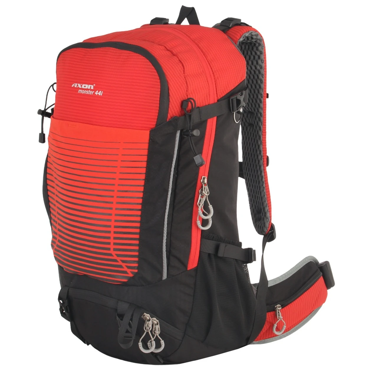 Rucsacul Axon Monster este un rucsac universal, potrivit pentru excursii turistice solicitante de una sau mai multe zile. Are spate căptușit, ventilat Airconntact cu o curea de șold căptușită cu buzunare cu fermoar.