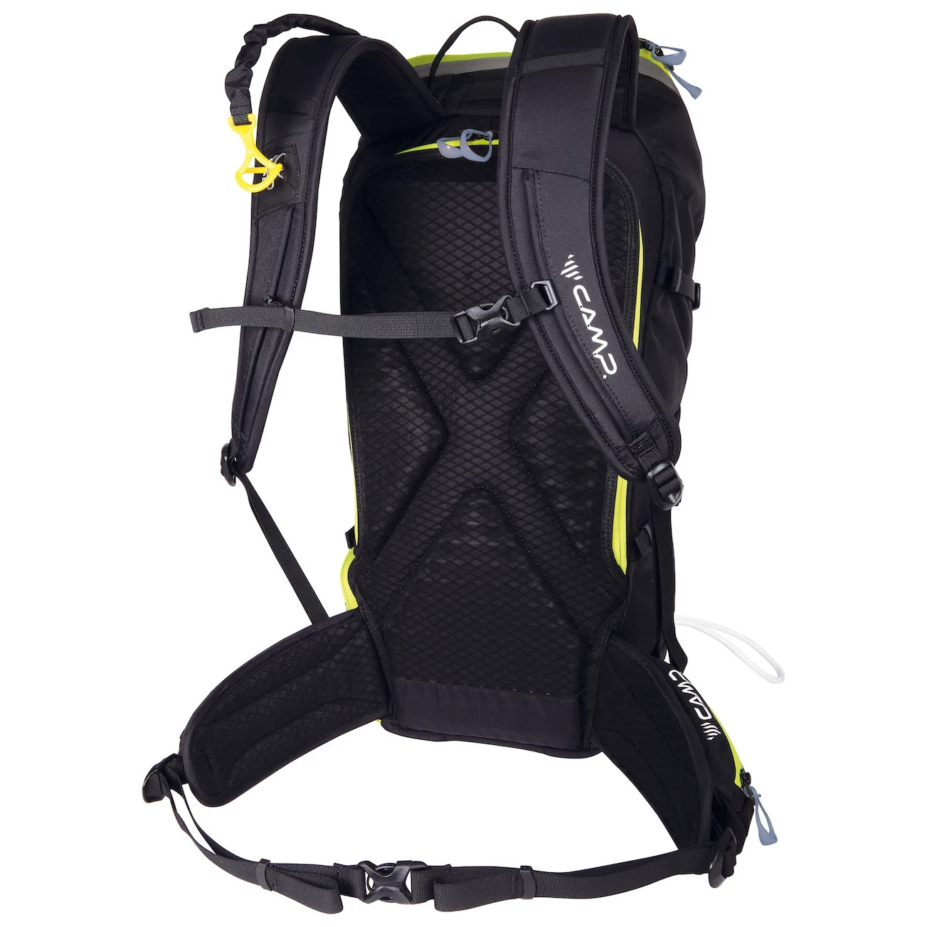 Un buzunar separat pentru avalanșă permite accesul rapid la lopată și sondă, în timp ce la buzunarul izolat pentru colțari poți ajunge fără a da rucsacul jos. Rucsacul are pe spate un sistem X-Press pentru transportul schiurilor, două sisteme pentru transportul pioleților, un sistem ascuns și detașabil pentru prinderea căștii și a bețelor.