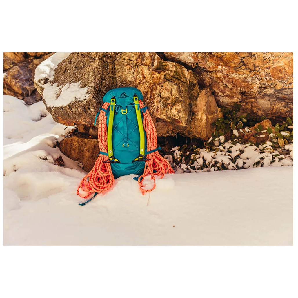 Rucsacul universal de alpinism Gregory Alpinisto 28 LT are un sistem de spate căptușit foarte confortabil FusionLite, care este rezistent la apă și zăpadă și vă menține spatele cald și un cadru HDPE detașabil. Bretelele de umăr EVA sunt ușoare și flexibile. Sistemul Bungee reține echipamentele voluminoase, cum ar fi colțarii sau cârligele de zăpadă. Rucsacul are, de asemenea, mânere fiabile și întărite pentru fixarea corzilor sau pentru menținerea sigură a schiurilor în configurația A-frame.