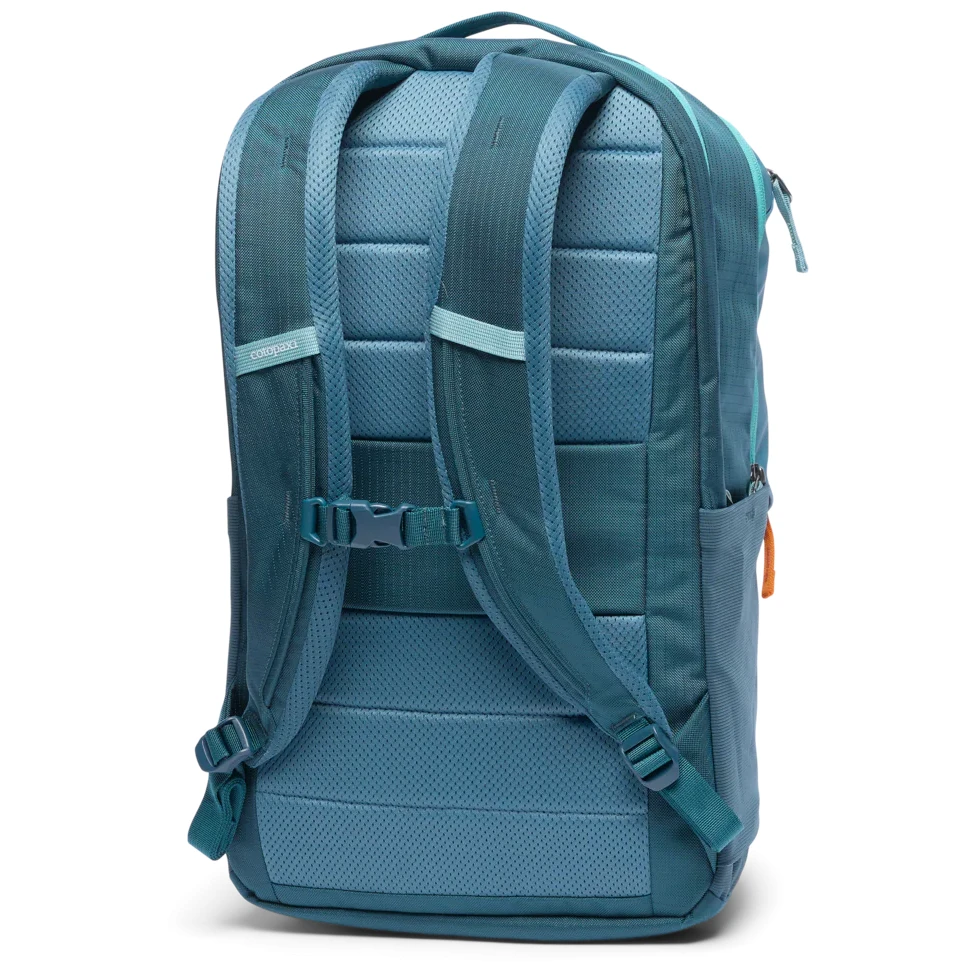 Rucsacul de călătorie Allpa 26L Daypack de la Cotopaxi este compact, dar oferă un volum de 26 de litri și suficient spațiu de depozitare pentru o gamă largă de activități. Pentru carcasă s-a folosit poliester reciclat cu înveliș TPU rezistent la apă, iar pentru panoul lateral poliester reciclat ripstop. Căptușeala este din poliester.
