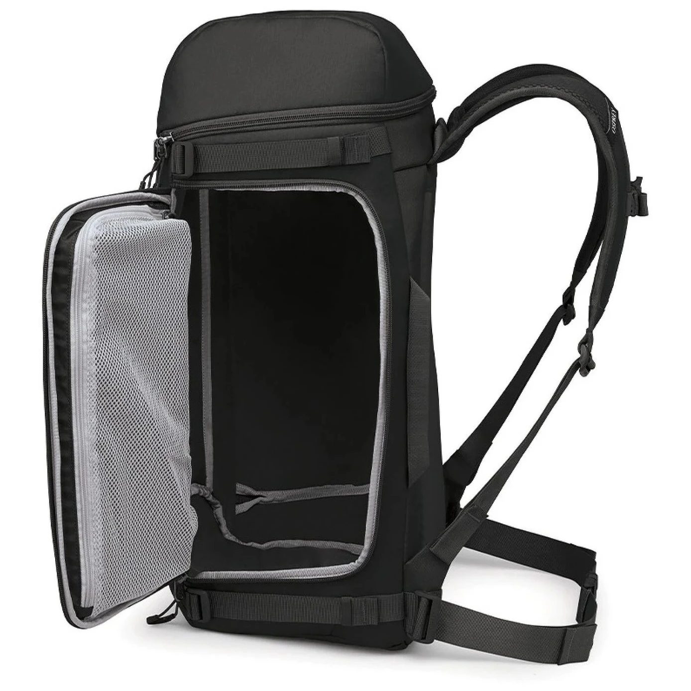 Confecționat din material NanoTough™ extrem de rezistent și impermeabil, vă va proteja echipamentul chiar și în condiții meteorologice dificile. Compartimentul principal căptușit găzduiește în siguranță clăparii și echipamentul de schi, în timp ce compartimentul superior este folosit pentru a depozita casca, ochelarii sau alte accesorii. Tehnologia AirScape™ asigură un transport confortabil și respirabil. Pachetul include, de asemenea, o husă căptușită practică pentru a vă scoate și încălța confortabil pantofii pe teren.