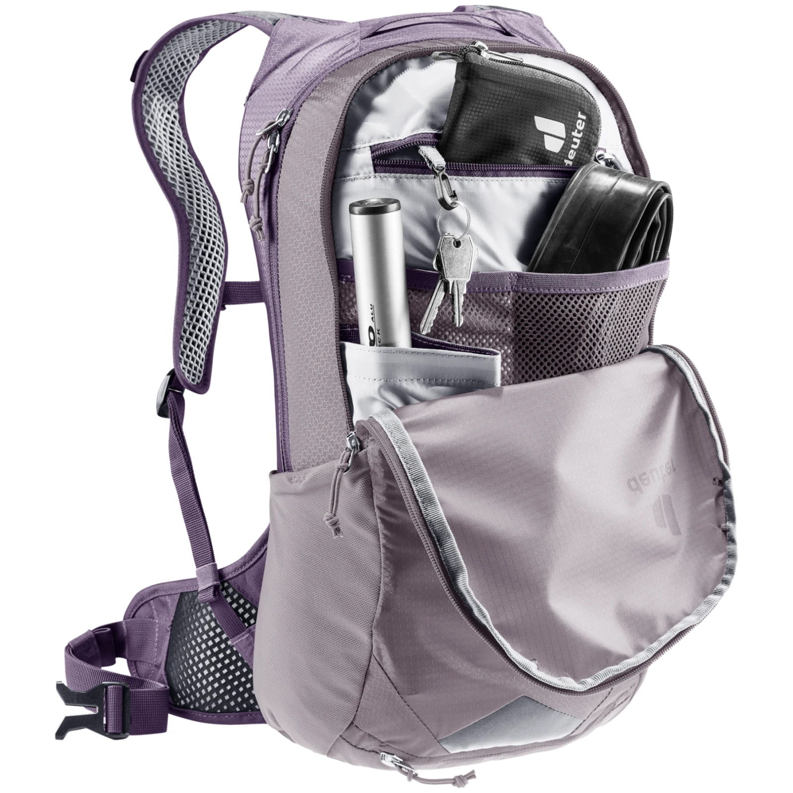 Rucsacul Deuter Race Air 10 este un rucsac de ciclism extra-ușor, dar rezistent, conceput pentru biciclete de munte și gravel. Sistemul de spate deuter aircomfort special dezvoltat pentru ciclism utilizează un panou despărțit din plasă, care limitează contactul cu spatele și creează mai mult spațiu pentru curbura naturală a coloanei vertebrale în poziția de pedalat.