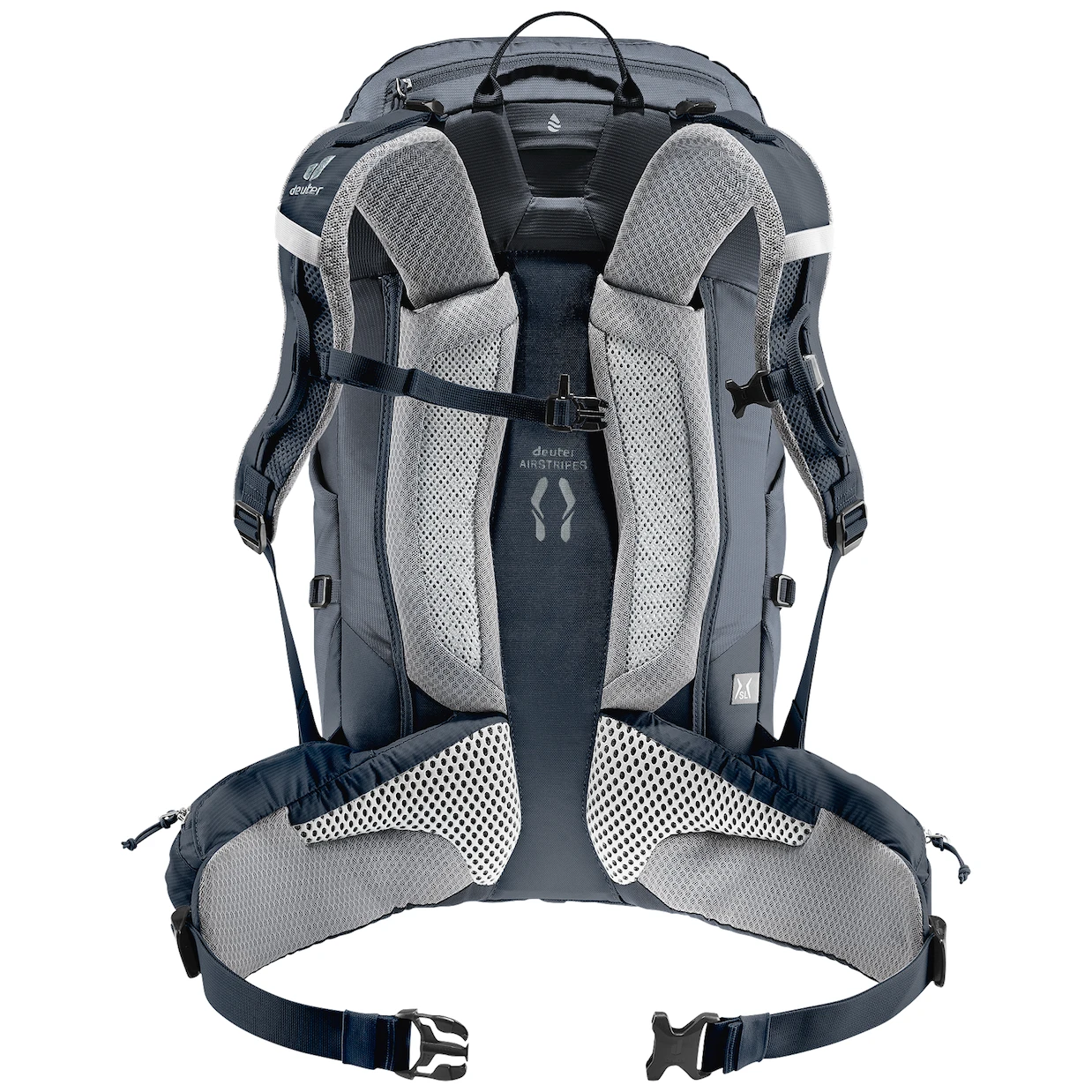 Rucsacul de călătorii Deuter Trail Pro 31 SL are o suprafață minimă în contact cu spatele. Este ideal pentru femei sau persoane cu o statură mai mică. Sistemul de spate este un cadru U Delrin® care asigură o mai bună fixare a rucsacului atunci când acesta nu este complet umplut. Sistemul de spate este așa-numitul Beneficiază de un cadru în U Delrin® pentru o mai bună fixare a rucsacului atunci când nu este complet umplut. Are un buzunar frontal mare împreună cu un organizator și o etichetă SOS. Desigur, este compatibil cu un sistem de hidratare de 3L și oferă buzunare laterale, inclusiv curele pentru atașarea unui piolet sau a bețelor de drumeție și un acces inferior pentru accesoriile sacului de dormit.