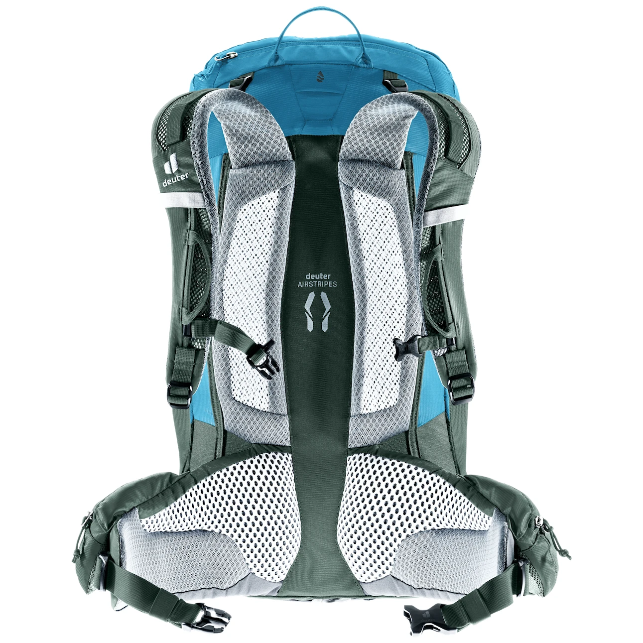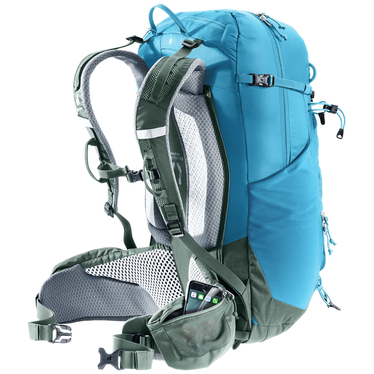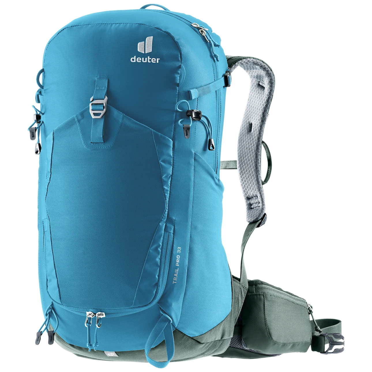 Rucsacul pentru drumeții Trail Pro 33 de la brandul Deuter are o zonă de contact redusă pe spate. Rucsacul este ideal pentru trasee pe distanțe lungi. Are curele foarte respirabile și o curea de talie mai moale. Sistemul de spate este așa-numitul Beneficiază de un cadru în U Delrin® pentru o mai bună fixare a rucsacului atunci când nu este complet umplut. Are un buzunar frontal mare împreună cu un organizator și o etichetă SOS. Desigur, este compatibil cu un sistem de hidratare de 3L și oferă buzunare laterale, inclusiv curele pentru atașarea unui piolet sau a bețelor de drumeție și un acces inferior pentru accesoriile sacului de dormit.