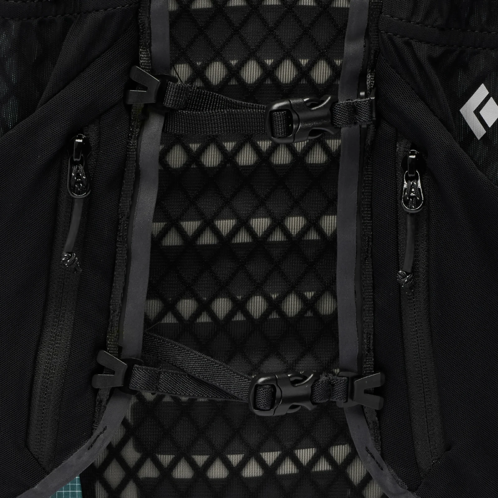 Rucsacul este echipat cu buzunare integrate pentru bețe Z-pole, două buzunare pentru soft flask (sticlele nu sunt incluse), un buzunar cu fermoar și două buzunare elastice pe bretelele de umăr, două buzunare laterale elastice și un buzunar interior cu fermoar și buclă pentru chei. Nu lipsește nici posibilitatea de a atașa un piolet și compresia laterală duală pentru ajustarea volumului. Volumul este de 8 litri, iar greutatea este de aproximativ 298 g (mărimea S).
