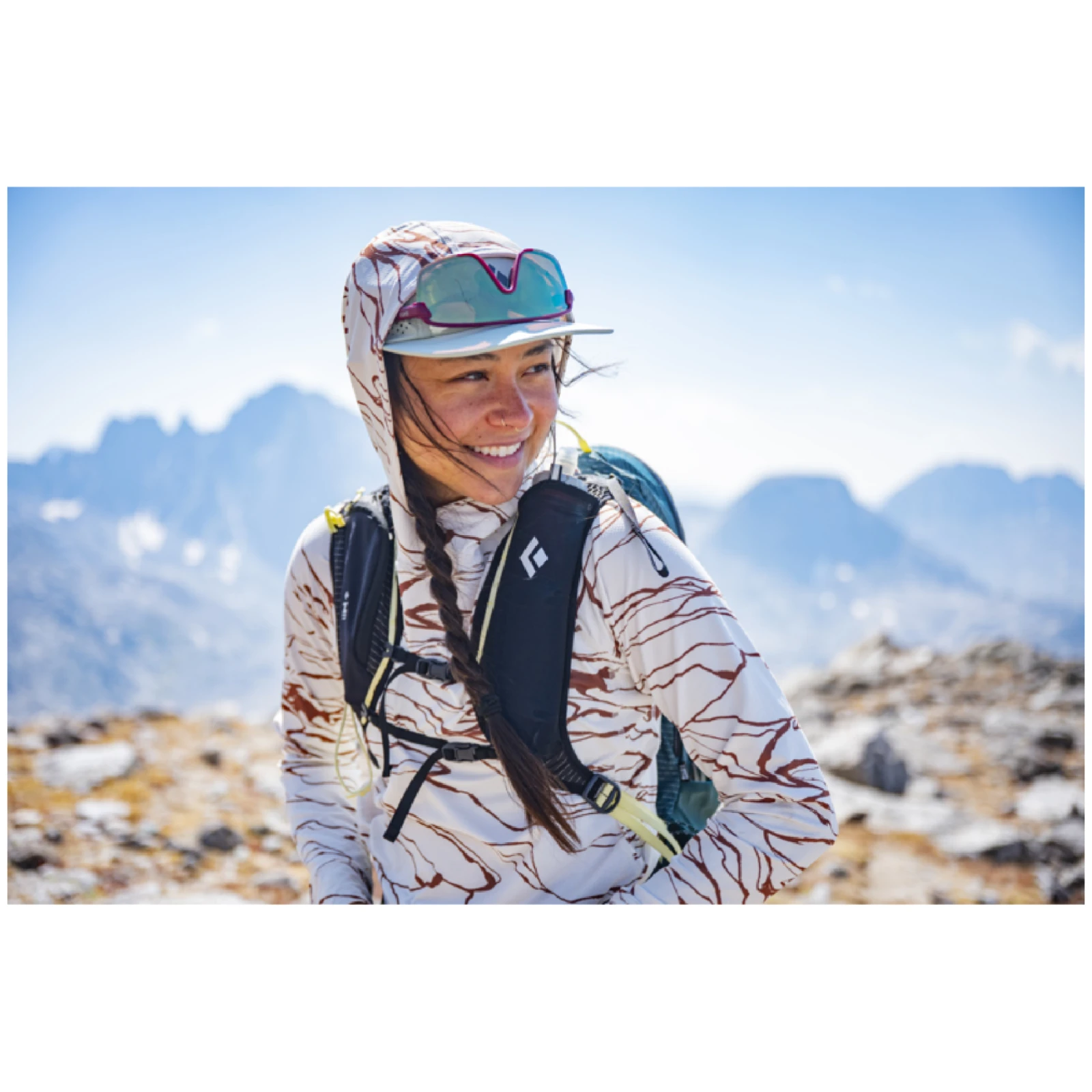 Rucsacul oferă o organizare intuitivă a buzunarelor – buzunare laterale cu acces rapid, buzunare elastice pentru depozitarea echipamentului în timpul mersului și un suport pentru Z-pole. Include un buzunar extern pentru sistemul de hidratare și un panou dorsal respirabil. Volumul este de 25 de litri, greutatea aproximativ 668 g (mărimea S/M), iar rucsacul este fabricat din materiale 100% reciclate pentru corpul și căptușeala sa.