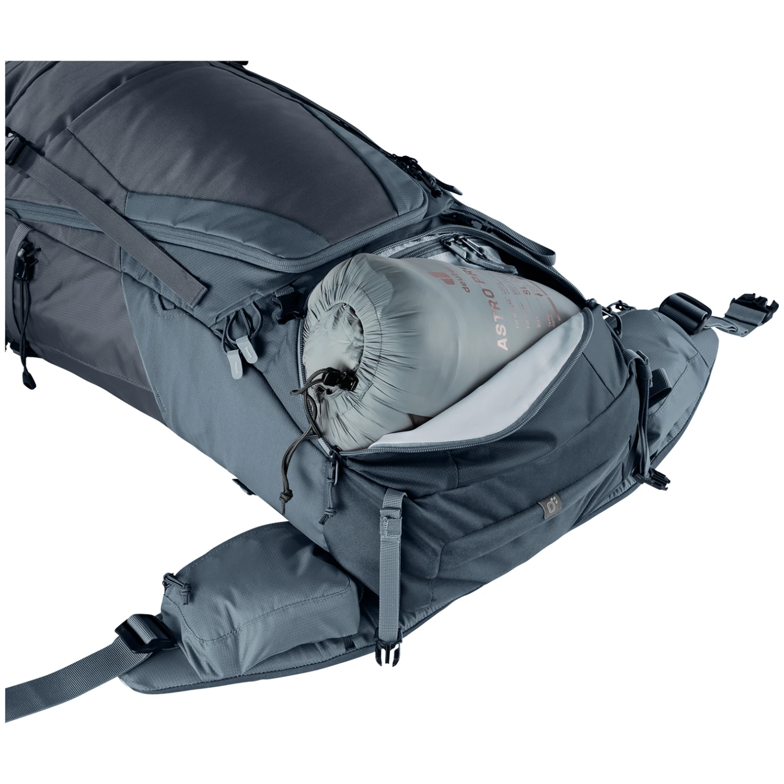 Rucsacul este echipat cu o pelerină de ploaie în caz de vreme rea, bucle pentru bețe, un buzunar pentru obiecte de valoare și un buzunar hidrovac de 3 litri. Există, de asemenea, un manual SOS, un capac superior cu 2 catarame și elemente reflectorizante. Rucsacul oferă, de asemenea, 2 buzunare laterale elastice, 2 buzunare pe cureaua de talie, bucle pentru bețe și piolet, un inel pentru chei și un compartiment inferior cu un separator separabil.