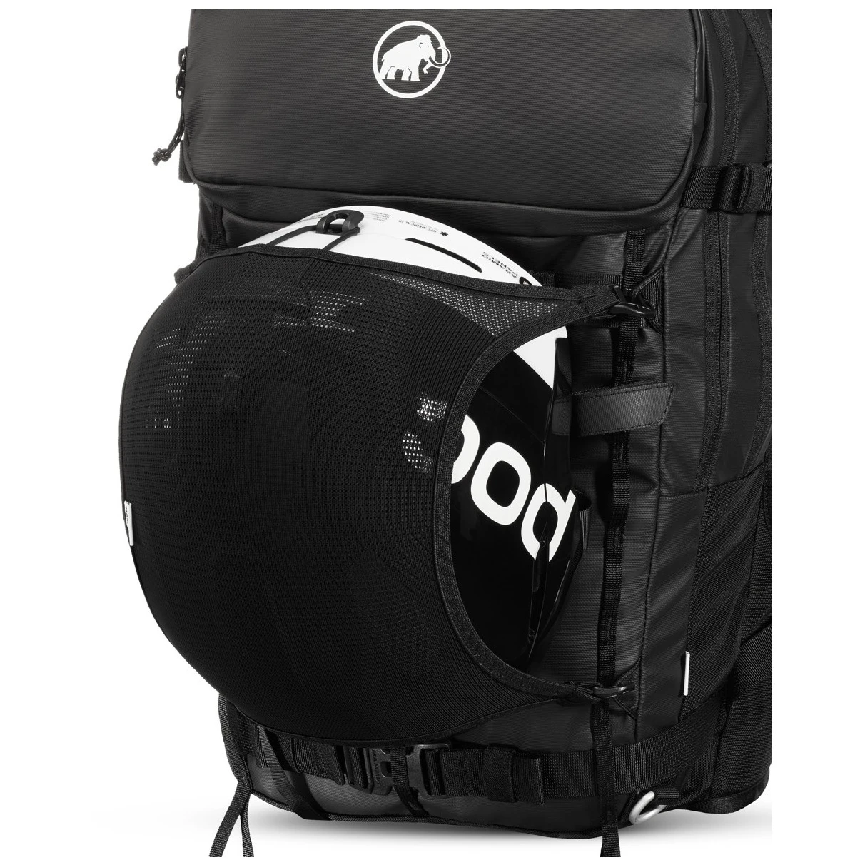 Pe lângă compartimentul principal, îți poți depozita lucrurile și în buzunarul frontal, care este destinat în principal echipamentului de avalanșă. De rucsac puteți prinde snowboard-ul, schiurile (pe diagonală), casca, pioletul sau bețele de drumeție. Rucsacul este compatibil cu un rezervor de apă.