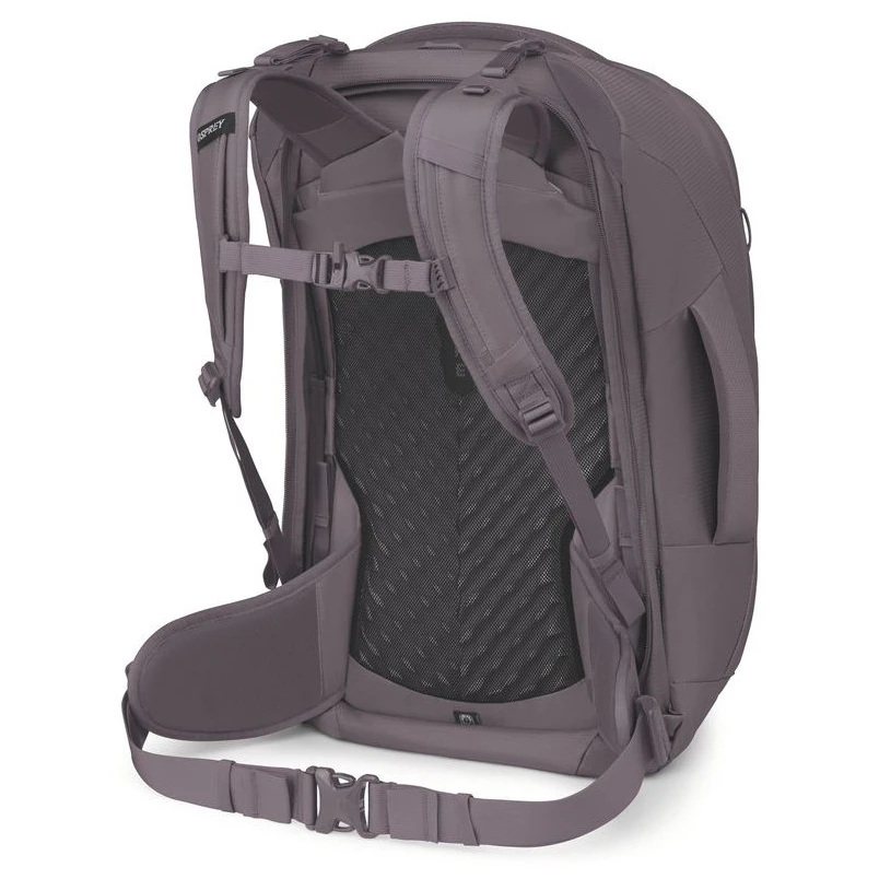 Accesul frontal mare în compartimentul principal facilitează împachetarea, în timp ce curelele de compresie interioare și frontale stabilizează conținutul. Include un buzunar superior pentru obiecte mici, două buzunare cu fermoar pe centura de șold, un compartiment interior multifuncțional pentru rezervor de apă sau laptop și mânere solide sus și lateral. Acesta include AirCover™ integrat, care protejează rucsacul la predarea bagajelor și servește, de asemenea, ca o pelerină de ploaie. Rucsacul este compatibil cu Travel Daypack-ul suplimentar sau Daylite™ și respectă standardul bluesign® PRODUCT.