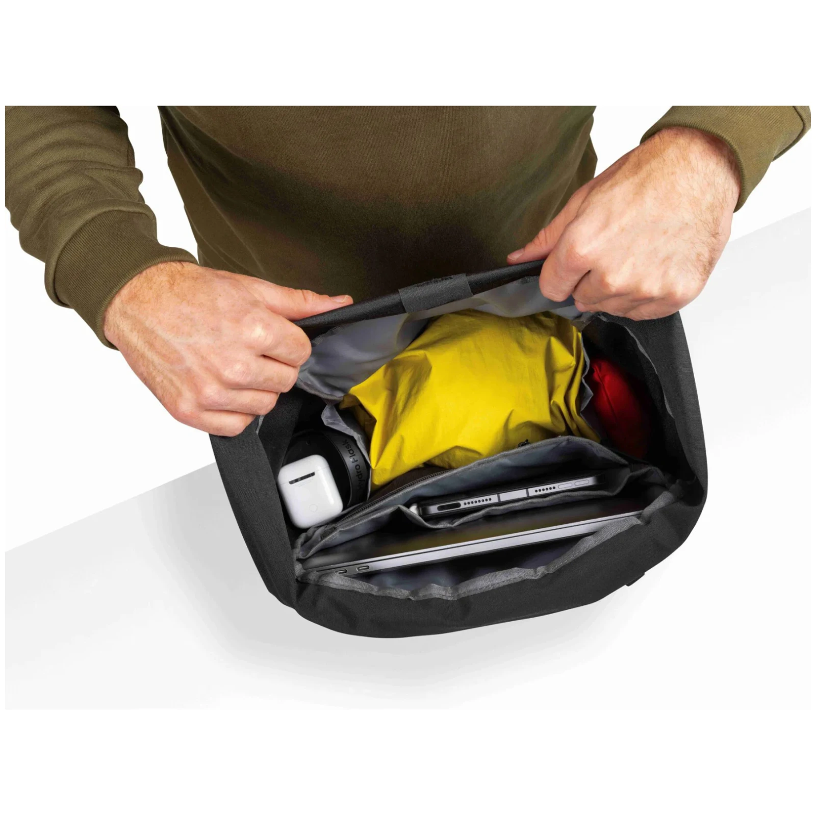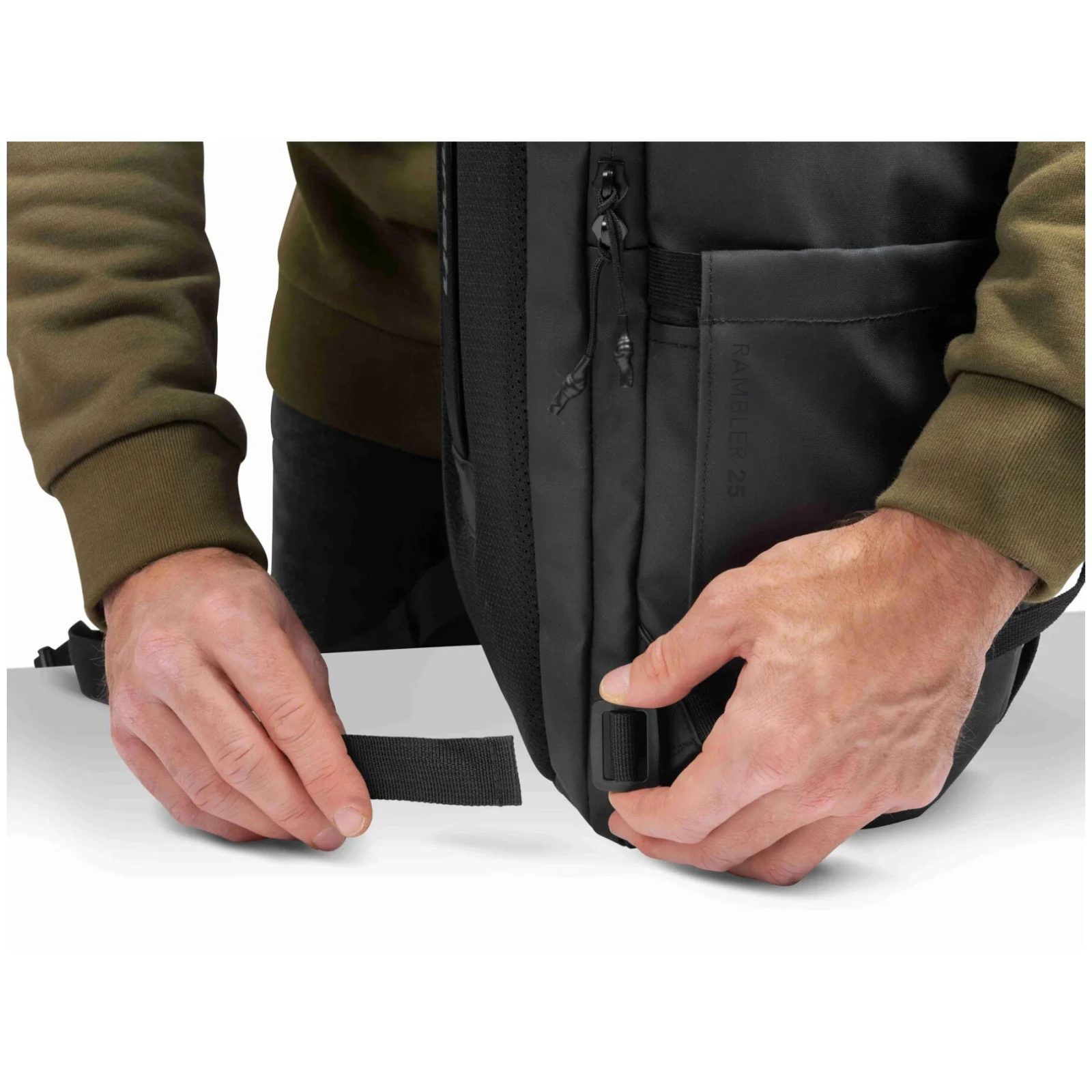 Datorită combinației dintre aspectul modern, materialele rezistente cu finisaj cauciucat și construcția bine gândită, Rambler se potrivește în orice mediu. Cu o greutate de doar 840 g, este ușor, dar suficient de spațios pentru utilizarea zilnică și pentru excursii mai lungi.