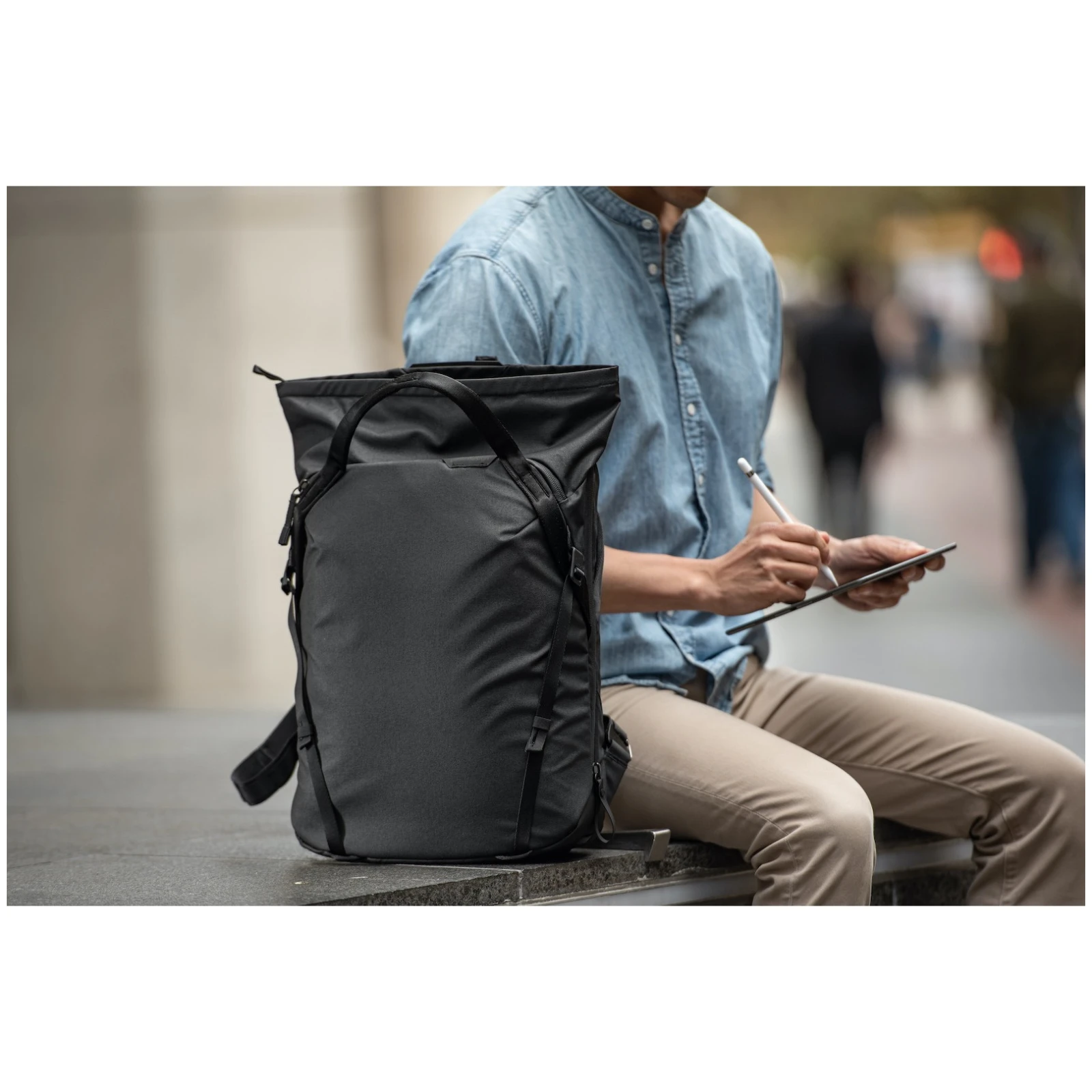 Everyday Totepack de la marca Peak Design combină stilul unei genți cu funcționalitatea unui rucsac. Este conceput pentru a se adapta zilei tale – fie că pleci la muncă, la o întâlnire sau în călătorii cu aparatul foto.