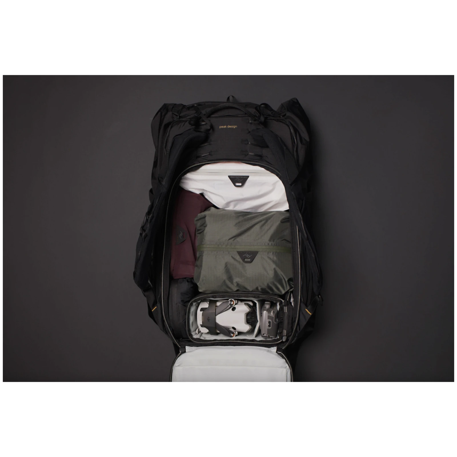 - spațiu interior modular compatibil cu Peak Design Camera Cubes și Packing Tools