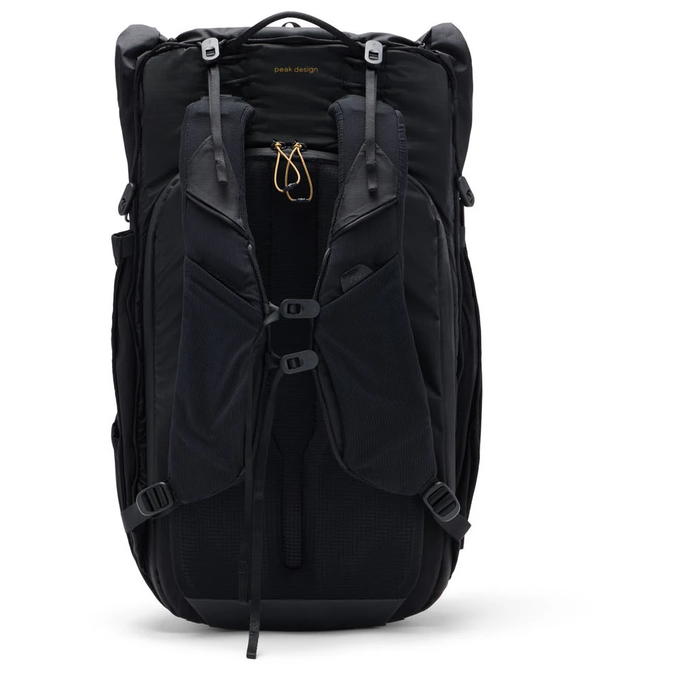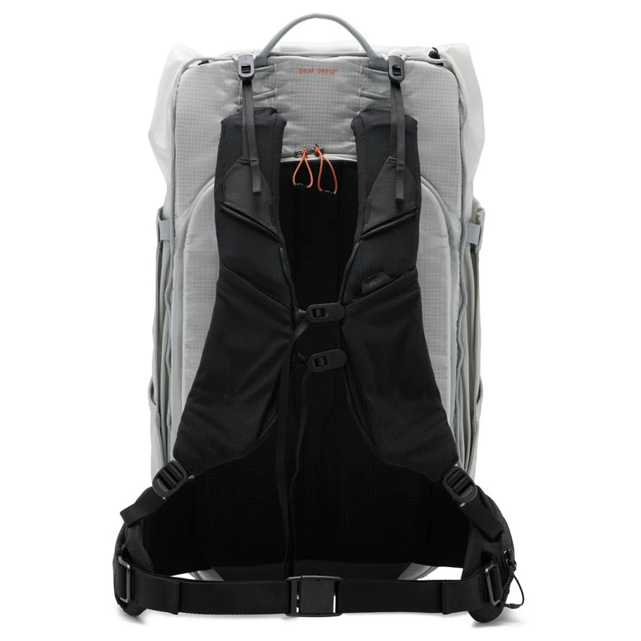 Rucsacul este complet compatibil cu întreaga gamă de organizatoare Peak Design, care vă permit să adaptați spațiul interior pentru orice tip de expediție – fie că este vorba de fotografie montană, drumeții de mai multe zile sau călătorii minimaliste. Bretelele de umăr inspirate de vestele de alergare distribuie uniform greutatea și asigură confort chiar și la purtare prelungită. Două buzunare elastice permit accesul rapid la elementele esențiale, cum ar fi telefonul sau un recipient moale pentru lichide, și în același timp ascund punctele de prindere pentru Capture Clip.