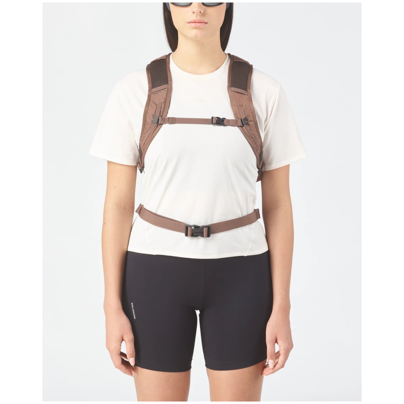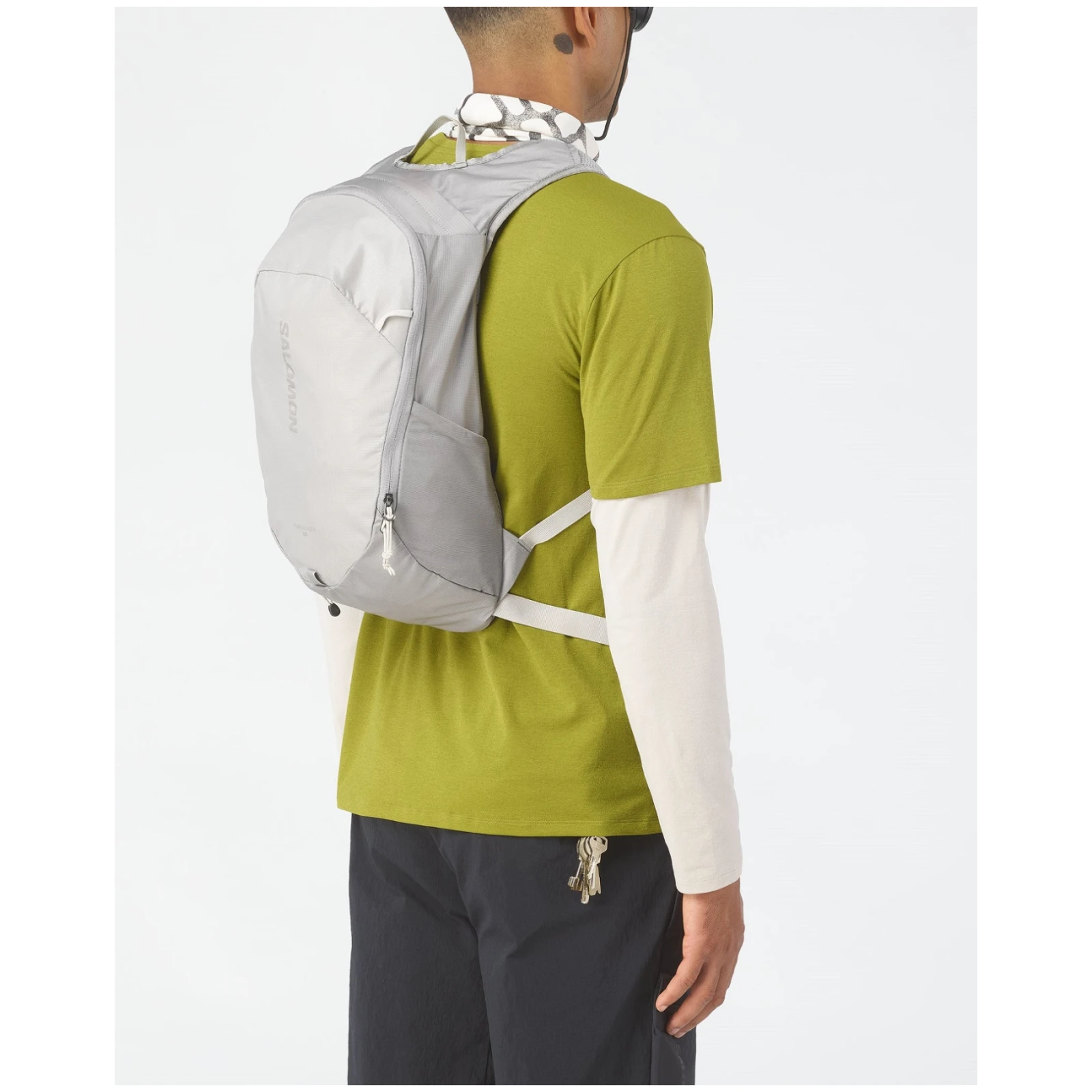 Rucsacul minimalist Salomon Trailblazer 10 este ideal pentru câteva lucruri mici de care aveți nevoie cu dvs. pentru o drumeție scurtă, o plimbare în oraș sau o excursie scurtă cu bicicleta. Buzunarul principal este perfect accesibil datorită fermoarului lung YKK. În partea superioară, rucsacul are un buzunar practic pentru obiecte mici, astfel încât să puteți avea, de exemplu, ochelarii de soare sau cheile la îndemână. De asemenea, puteți atașa bețele de trekking pe rucsac iar în interior puteți adăuga un rezervoar de apă pentru a avea la îndemână lichidele necesare în timpul activităților fizice.
