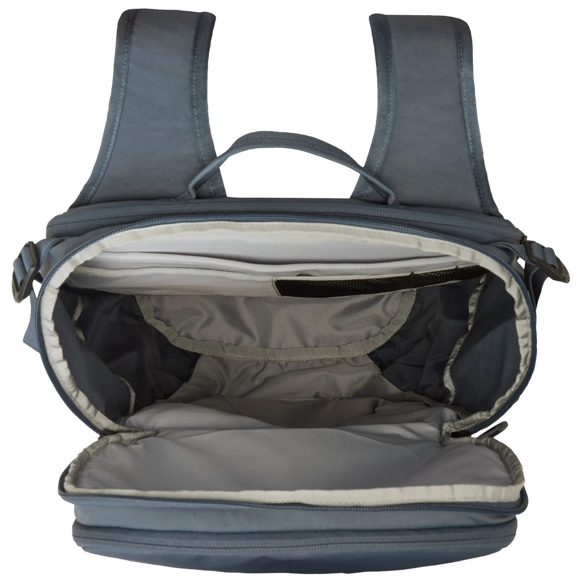 Rucsacul oferă un compartiment principal spațios cu fermoar, cu mult spațiude depozitare pentru lucrurile esențiale pentru serviciu și călătorii. Buzunarul interior din plasă cu fermoar securizat și clips pentru chei facilitează organizarea obiectelor mici, în timp ce compartimentul căptușit cu fleece pentru laptop protejează un laptop de 13" sau 15".